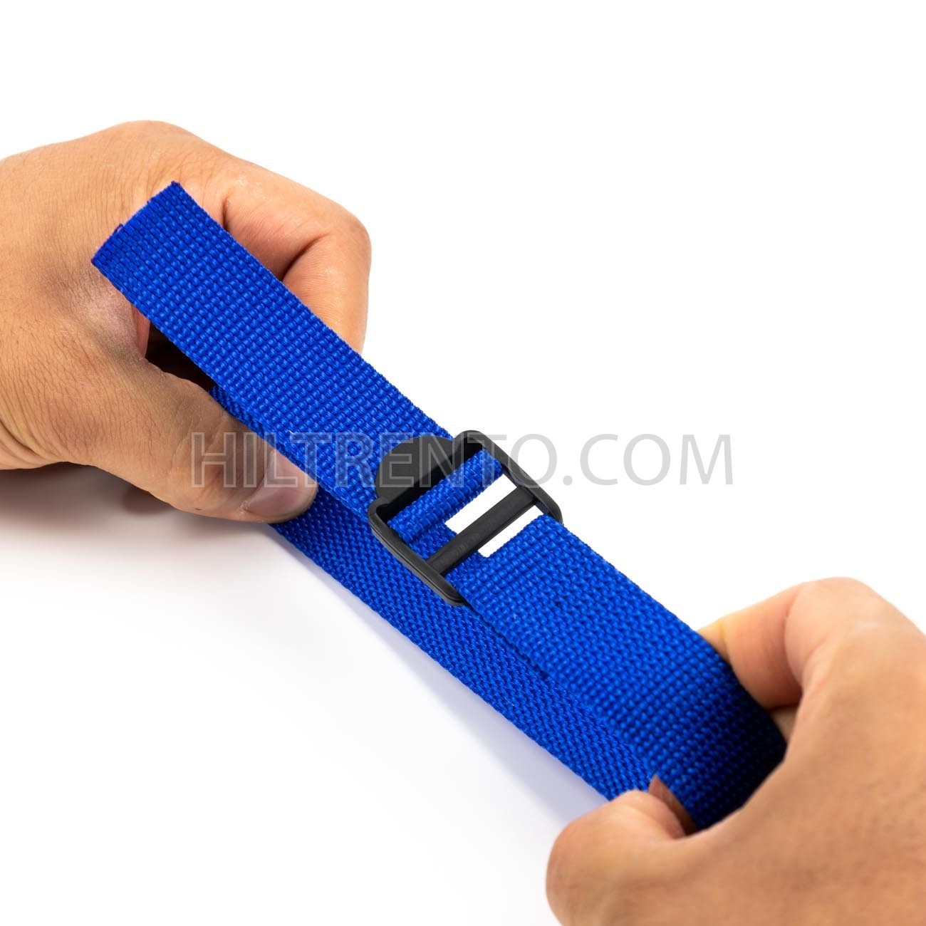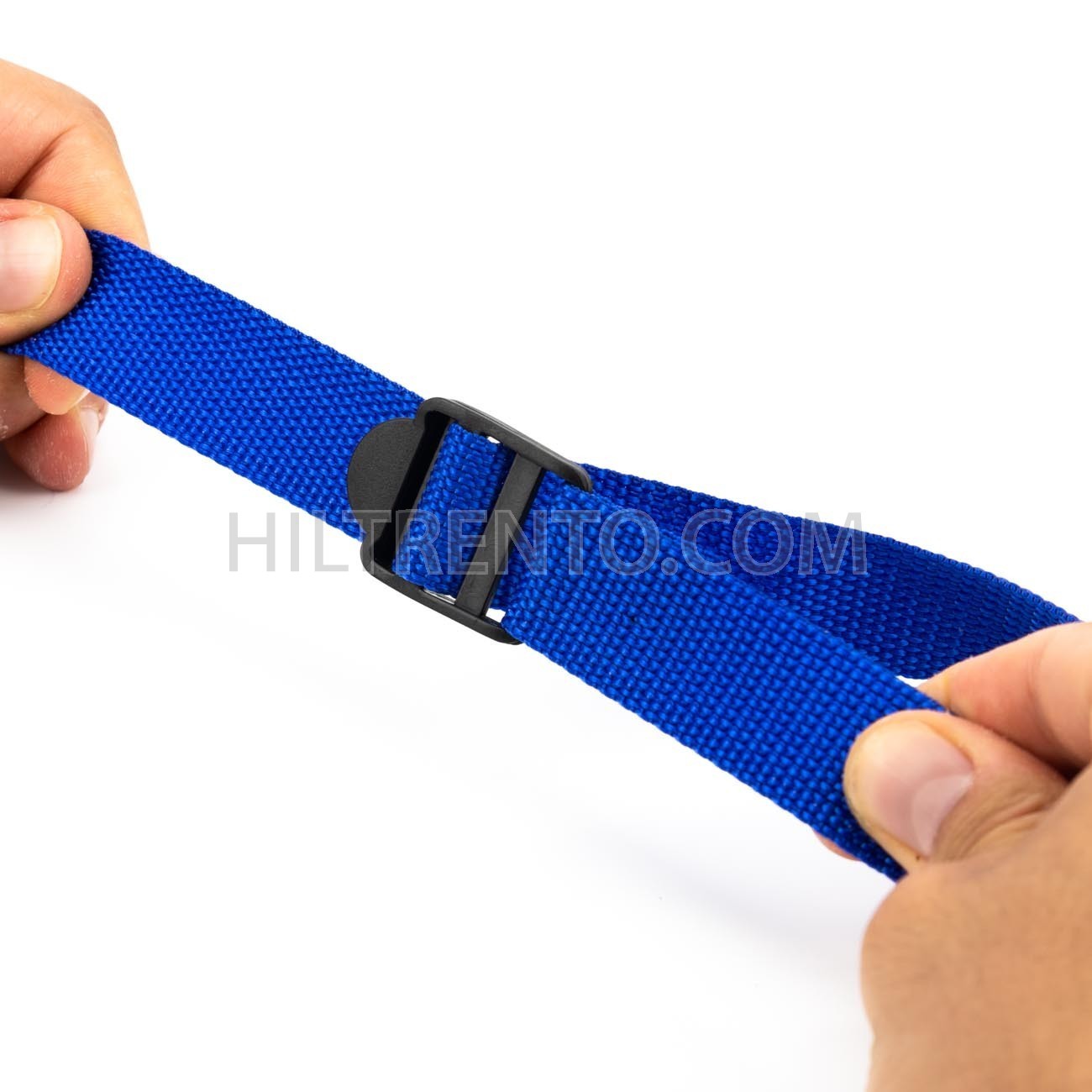 Tensor para cintas de mochila y similares que hace la función de ajustar y apretar la cinta al tirar de ella. La cinta se cose sobre si misma a uno de sus extremos y se pasa por el otro, de forma que la parte de cinta que queda por debajo se ajusta perfectamente sin soltarse. Cuando inclinas la hebilla hacia una posición un poco más vertical la cinta se libera al tirar de la parte que queda por encima, deslizándose para permitir el ajuste deseado. Se usa en mochilas, bolsas de deporte, riñoneras, etc. La hebilla incorpora una agarradera cómodamente al tirar de ella.