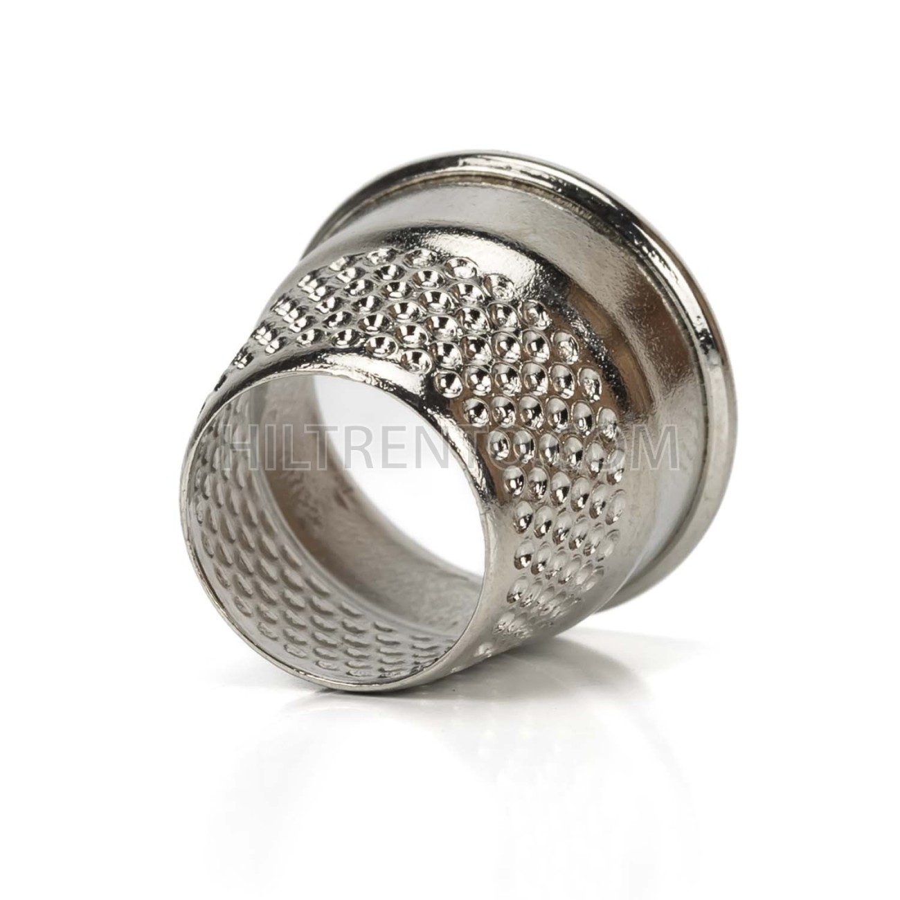 Dedal de sastre abierto por ambos lados con un agujero en la parte superior. Se utiliza en sastrería y costura. Superficie punteada para un perfecto apoyo de la aguja sobre el dedal. También es muy utilizado para no dañar las uñas al no tener el extremo cerrado.