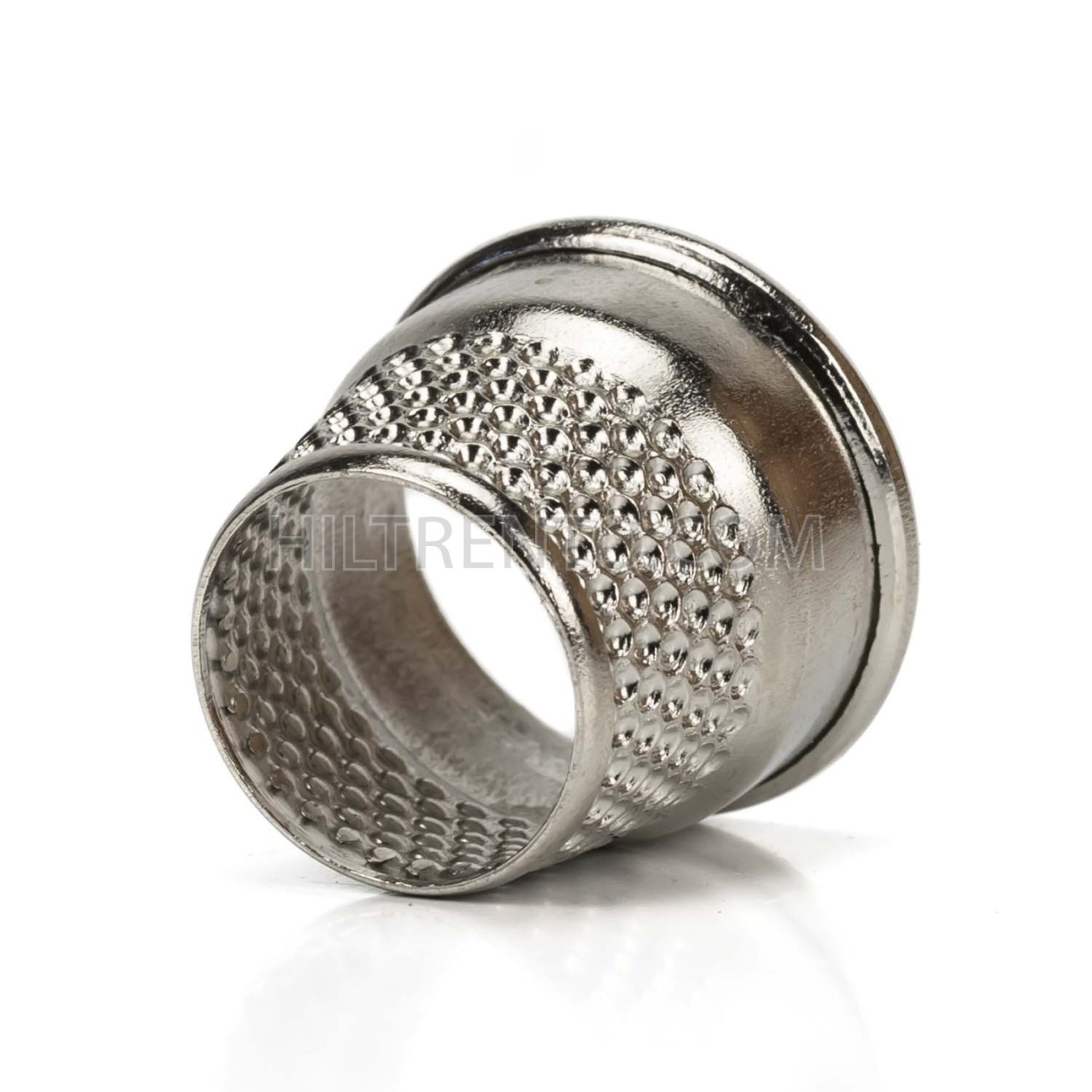 Dedal de sastre abierto por ambos lados con un agujero en la parte superior. Se utiliza en sastrería y costura. Superficie punteada para un perfecto apoyo de la aguja sobre el dedal. También es muy utilizado para no dañar las uñas al no tener el extremo cerrado.