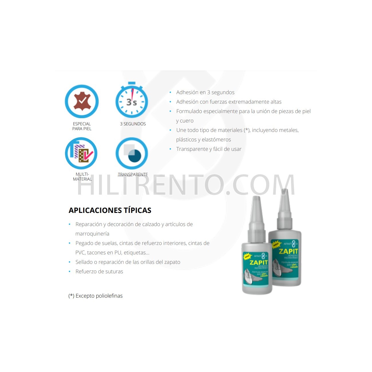 Adhesivo instantáneo para piel y calzado Zapit Afinitica - 20 g
