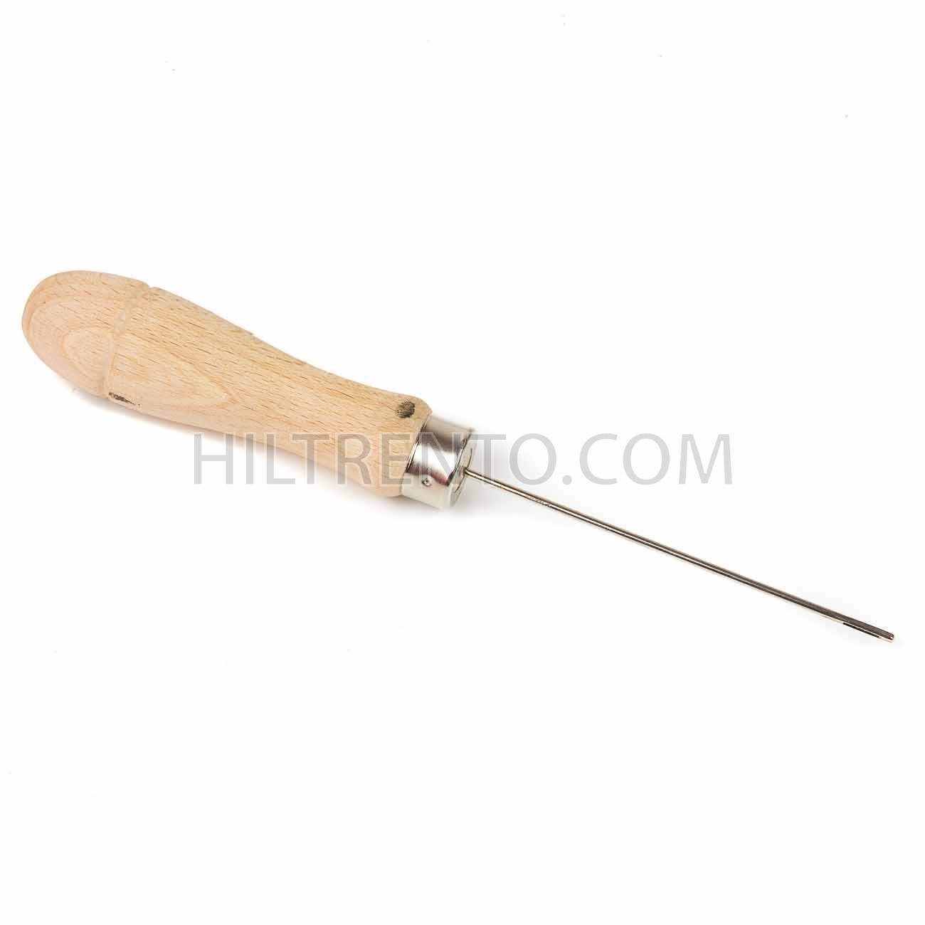 Aguja manual con hoja larga de 15 cm y mango de madera ergonómico. Para coser piel, cuero, tela, etc.