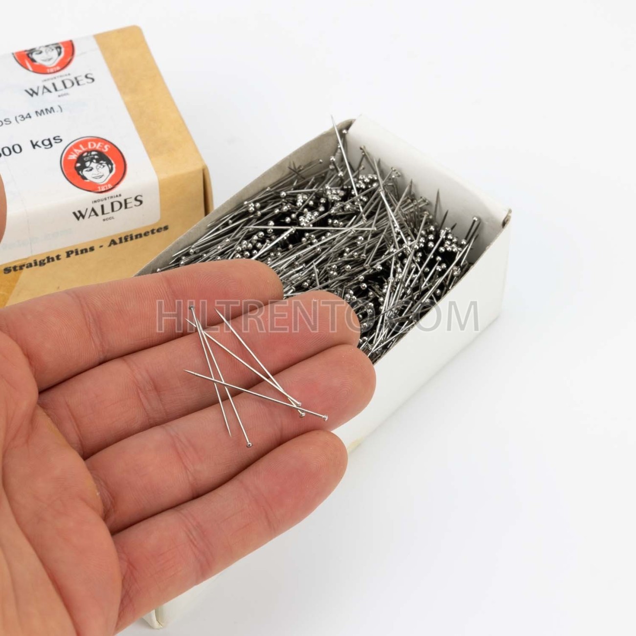 Alfileres 34 mm nº 8 acero niquel Waldes - Caja 0.5 kg 6200 uds