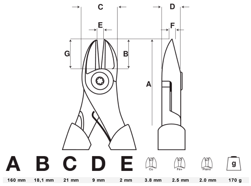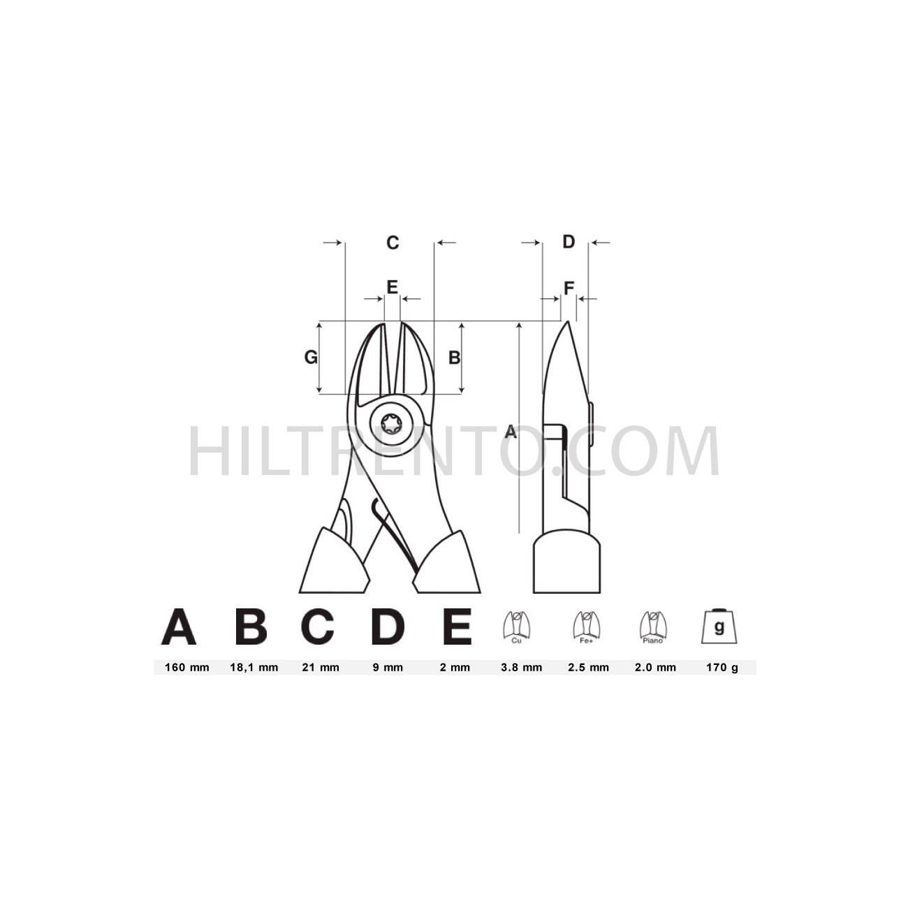 - Capacidad de corte de cuerda de piano, mm: 2 mm