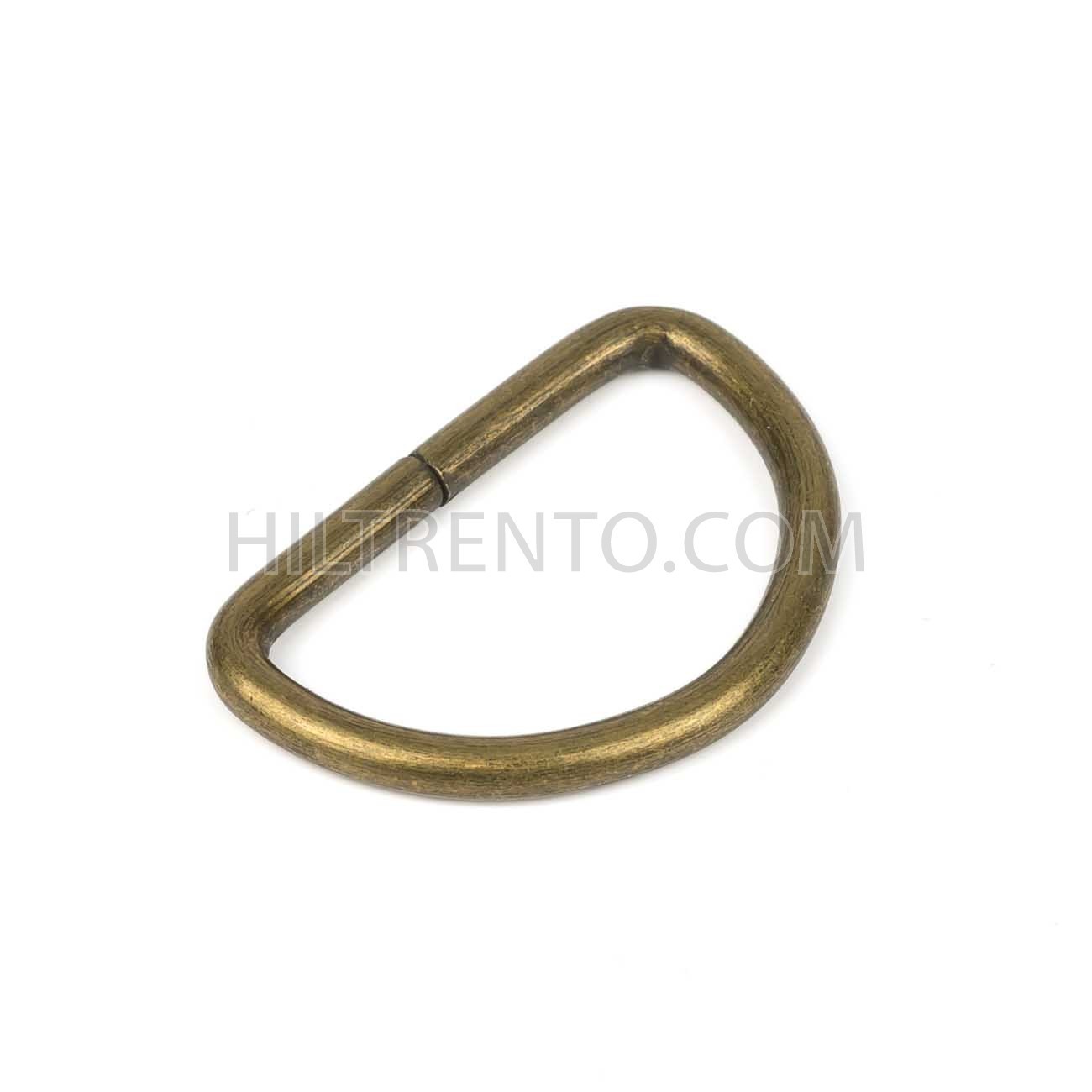 Anilla metálica en forma de media luna o D, con un lado plano. Estas semianillas se utilizan para correas de bolsos, collares para animales, bolsos de mano, llaveros y artículos de piel, lanyards, etc.