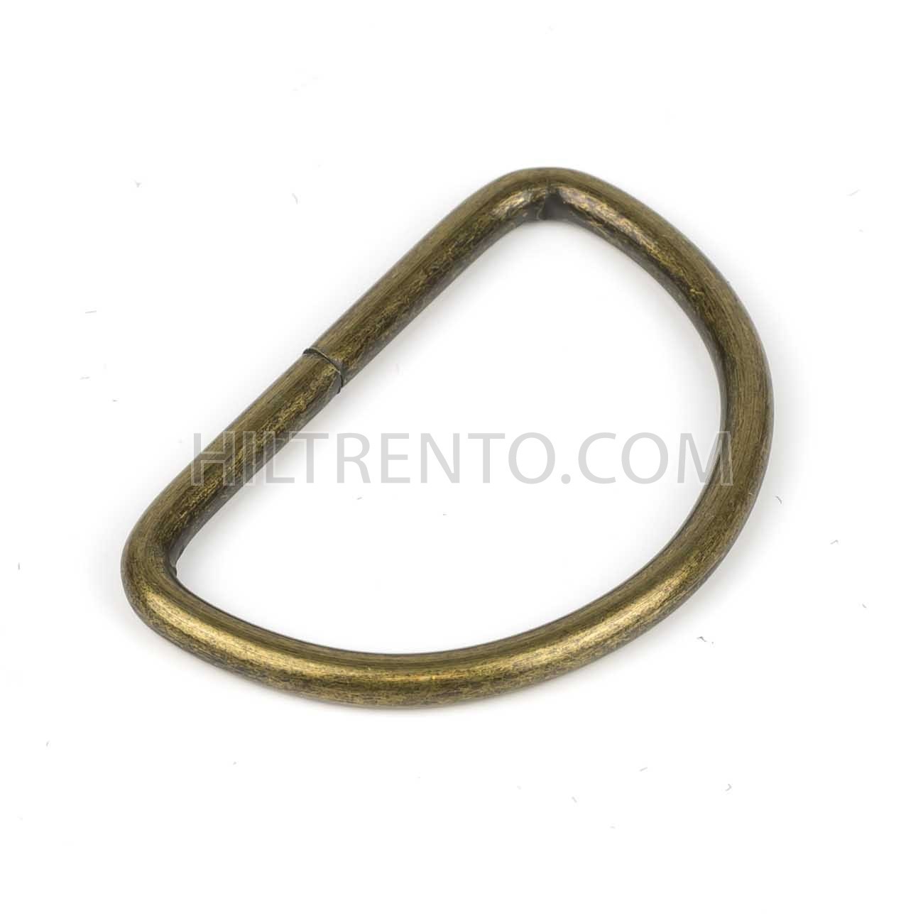 Anilla metálica en forma de media luna o D, con un lado plano. Estas semianillas se utilizan para correas de bolsos, collares para animales, bolsos de mano, llaveros y artículos de piel, lanyards, etc.