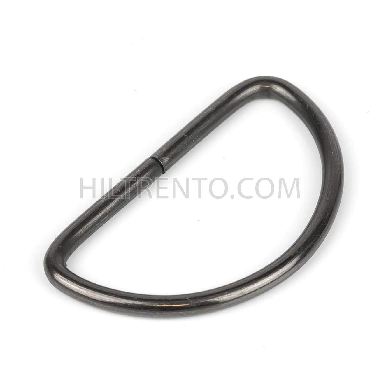 Anilla metálica en forma de media luna o D, con un lado plano. Estas semianillas se utilizan para correas de bolsos, collares para animales, bolsos de mano, llaveros y artículos de piel, lanyards, etc.
