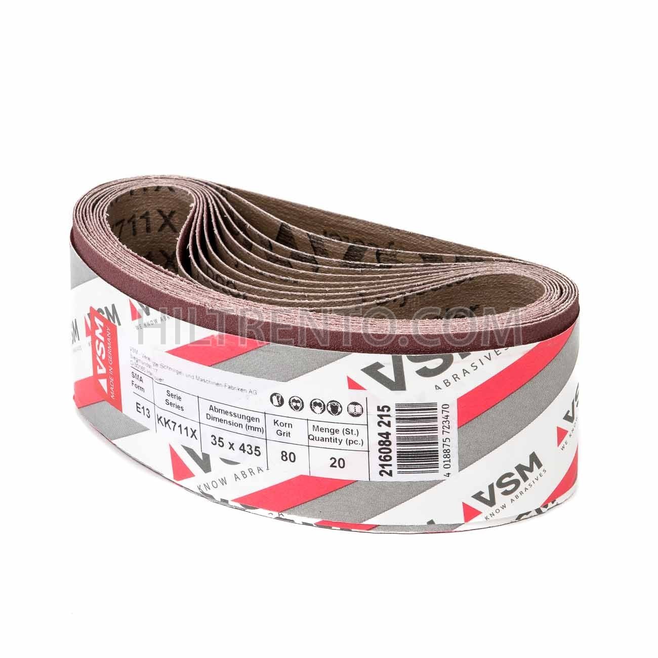 Banda de lija tela roja VSM VITEX 35x435 mm grano 80 - Pack 10 uds