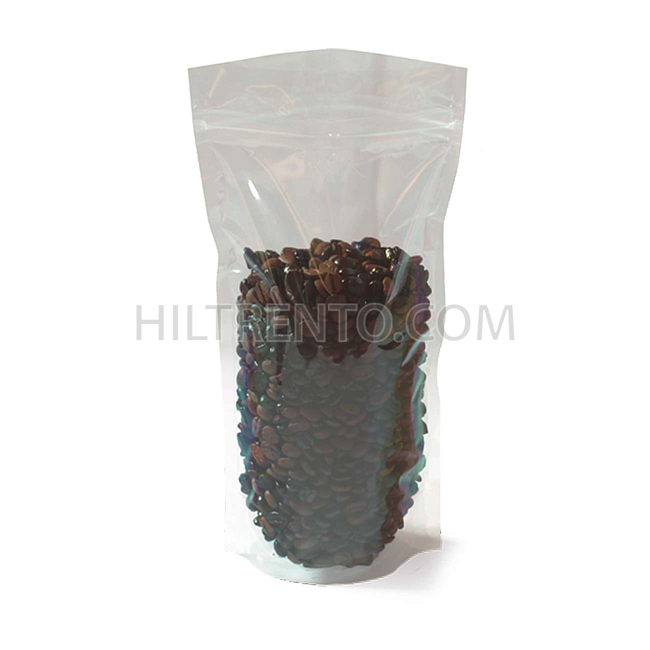 Bolsas de polietileno laminadas con alto brillo efecto cristal y buena rigidez. Incorporan autocierre y un espacio extra por encima para poder termo soldarlas. Base auto-portante que les permite mantenerse en vertical sobre cualquier superficie.