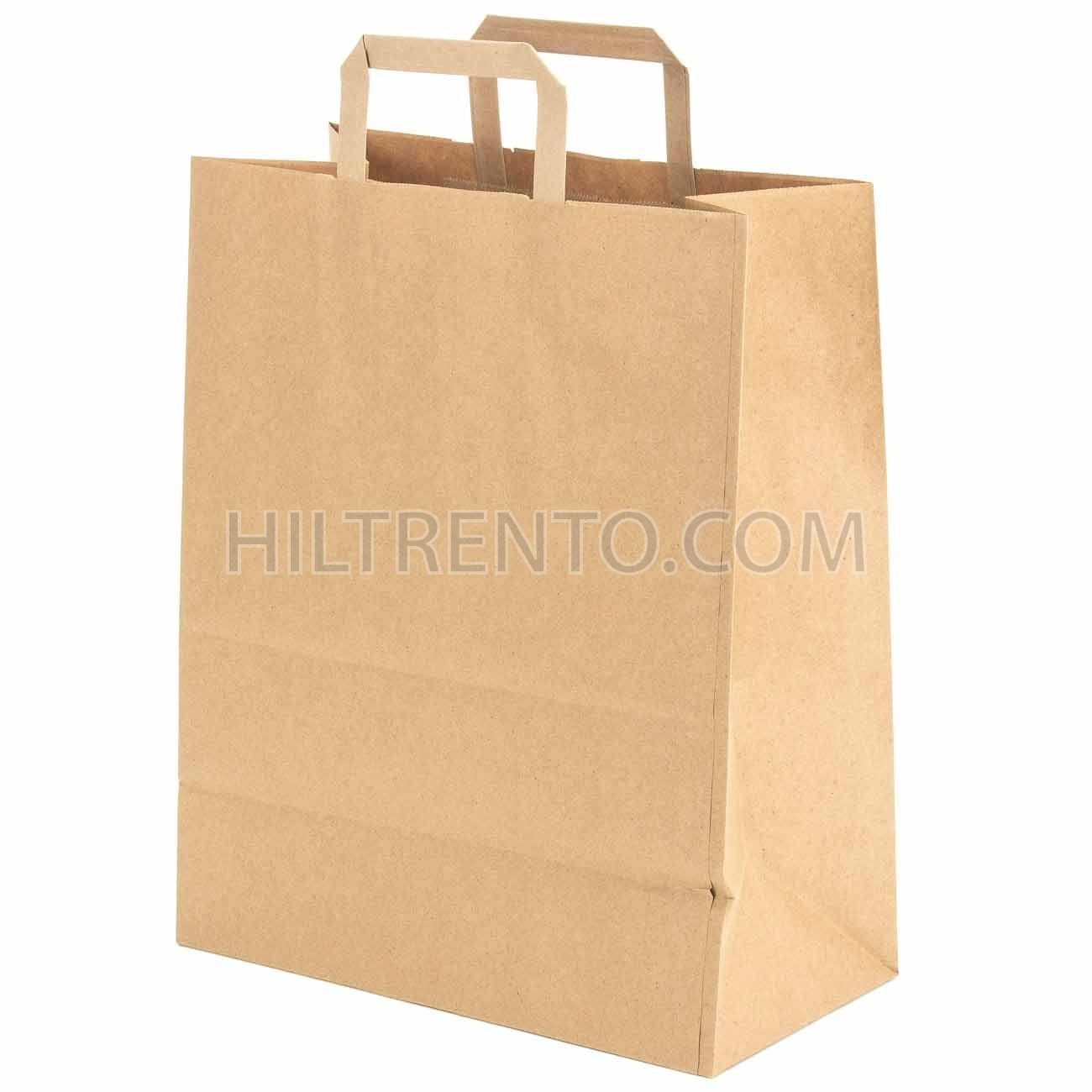 Bolsa papel kraft marrón con asa plana 32+17x40 cm, 100 g/m² - Caja 250 uds
