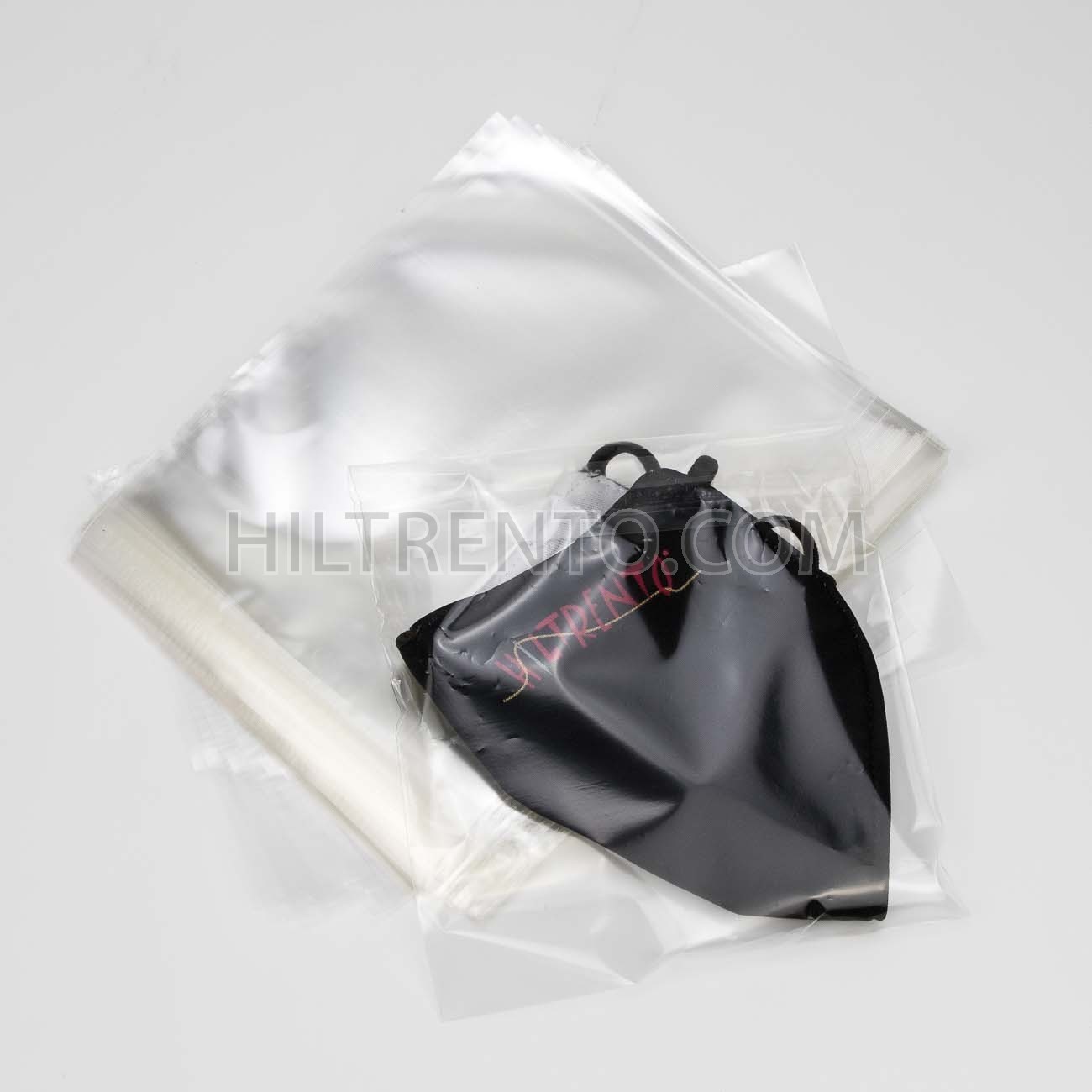 Bolsa transparente con cierre de solapa adhesiva. Fabricada en polipropileno biorientado (celofán).