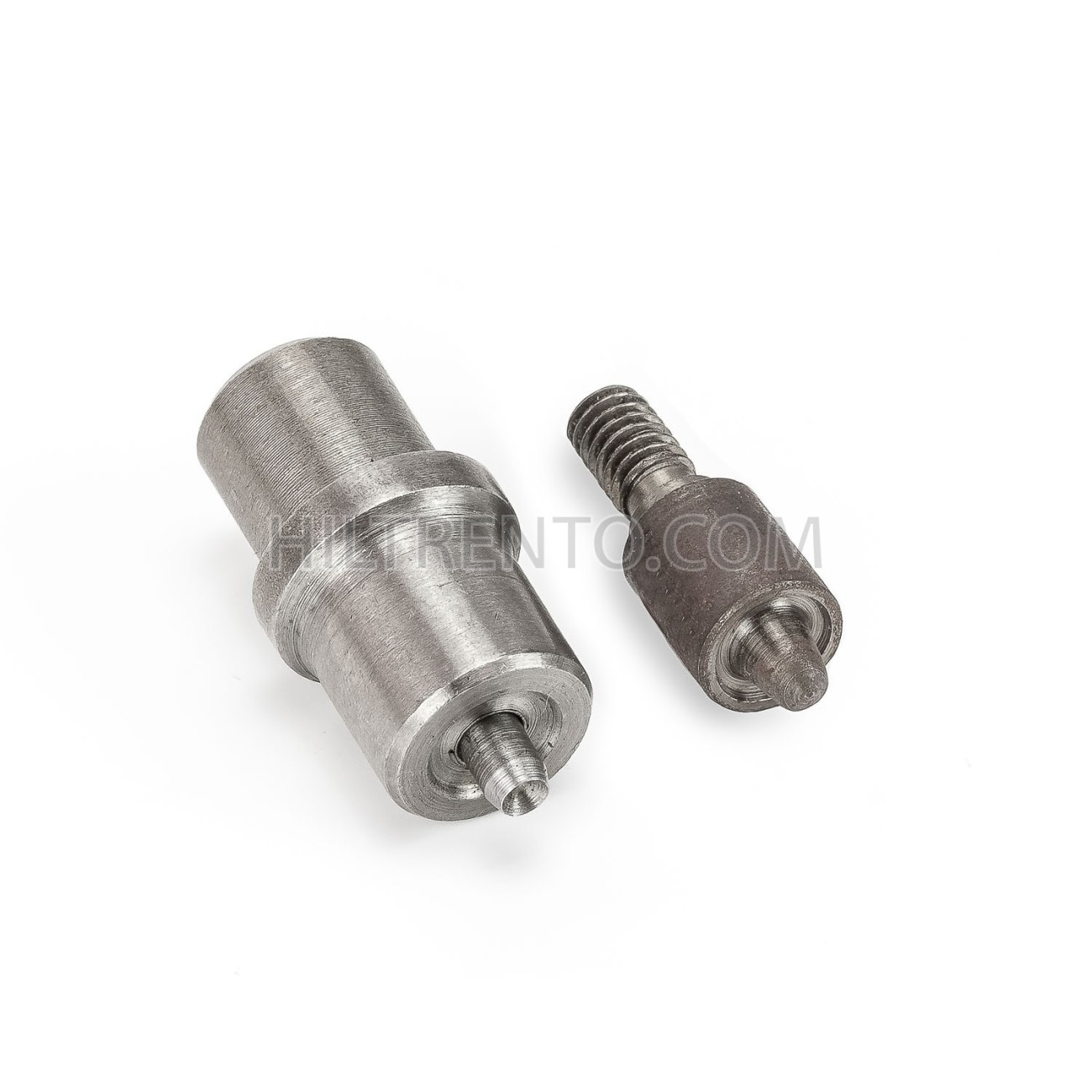 Troquel pequeño para colocar ojetes en máquinas vulcan. Incorpora un resorte en el vástago. Compuesto por dos piezas, la parte alta y baja para colocar en la prensa. La parte alta se enrosca a la máquina y la parte baja se coloca en el hueco soporte de la máquina. Apto para la máquina vulcan 3, vulcan brazo largo, de pedal, etc.