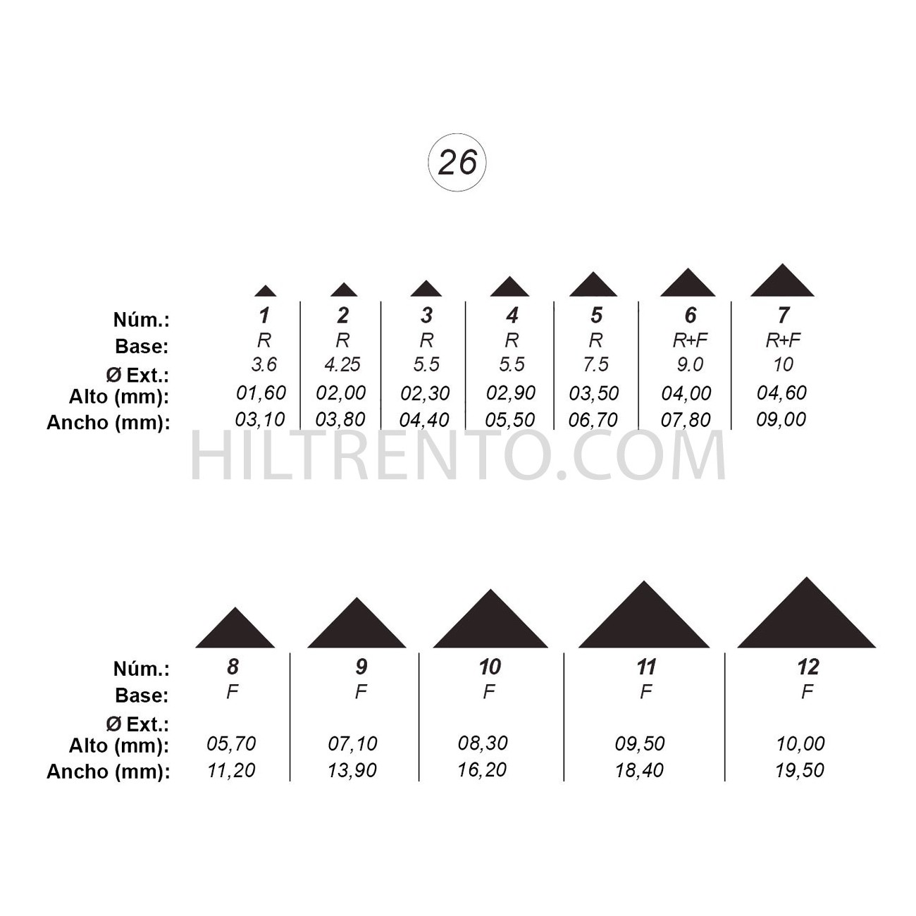 Agujas de perforar ref.26 (12 números)
