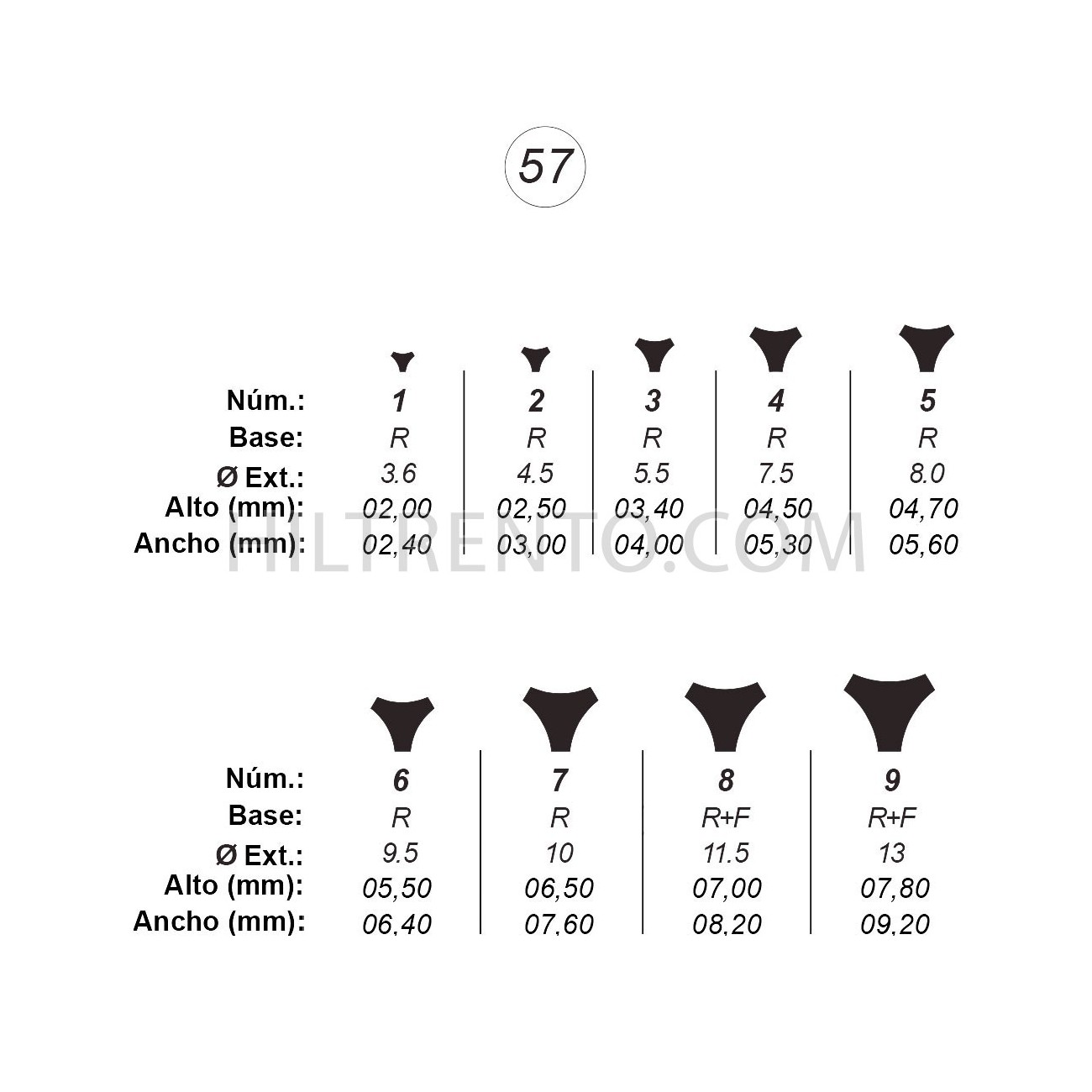 Descargue abajo el catálogo para imprimir a escala real el corte producido por las boquillas