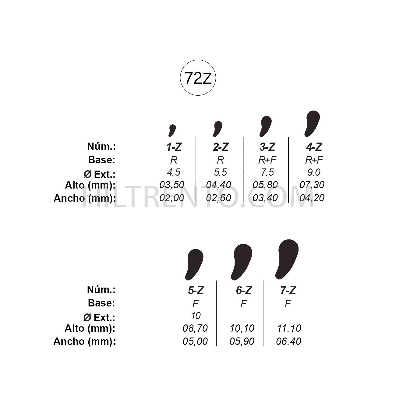 Descargue abajo el catálogo para imprimir a escala real el corte producido por las boquillas