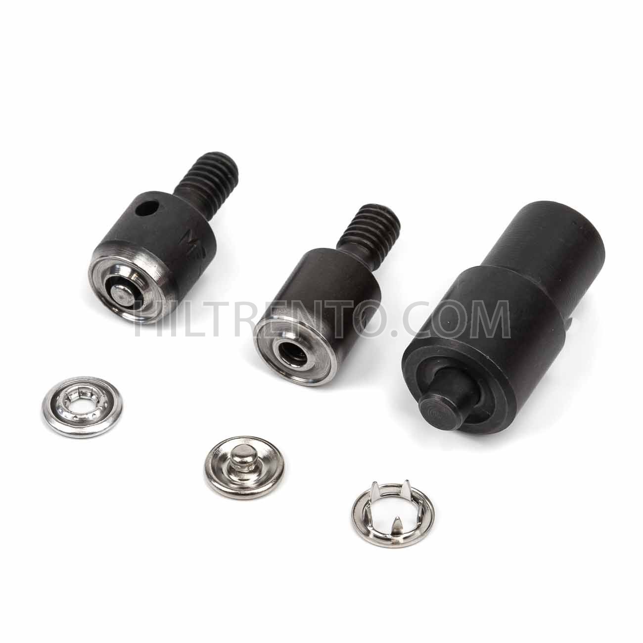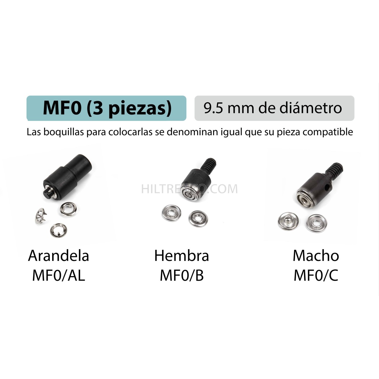 Juego de 3 boquillas para colocar todas las piezas que forman el botón de presión MF0, también llamado corchete o snaps. Calidad profesional.