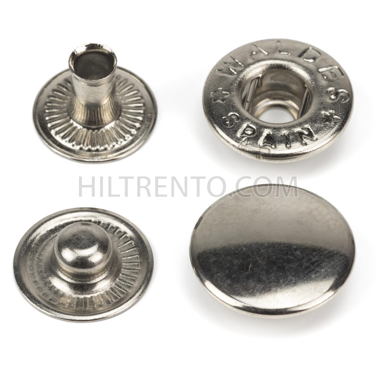 Broche o botón de presión metálico, de tensión suave, adecuado para marroquinería, estuches, monederos, bolsos, fundas, etc. También para confección en camisas, gabardinas, chaquetas, anoraks, pantalones, etc. Fabricados en latón, un material inoxidable a prueba de ambientes húmedos y salinos. Resistentes a la intemperie y adecuados también para el sector náutico. Calidad industrial, pensados para aguantar el desgaste y uso continuado durante miles de veces.