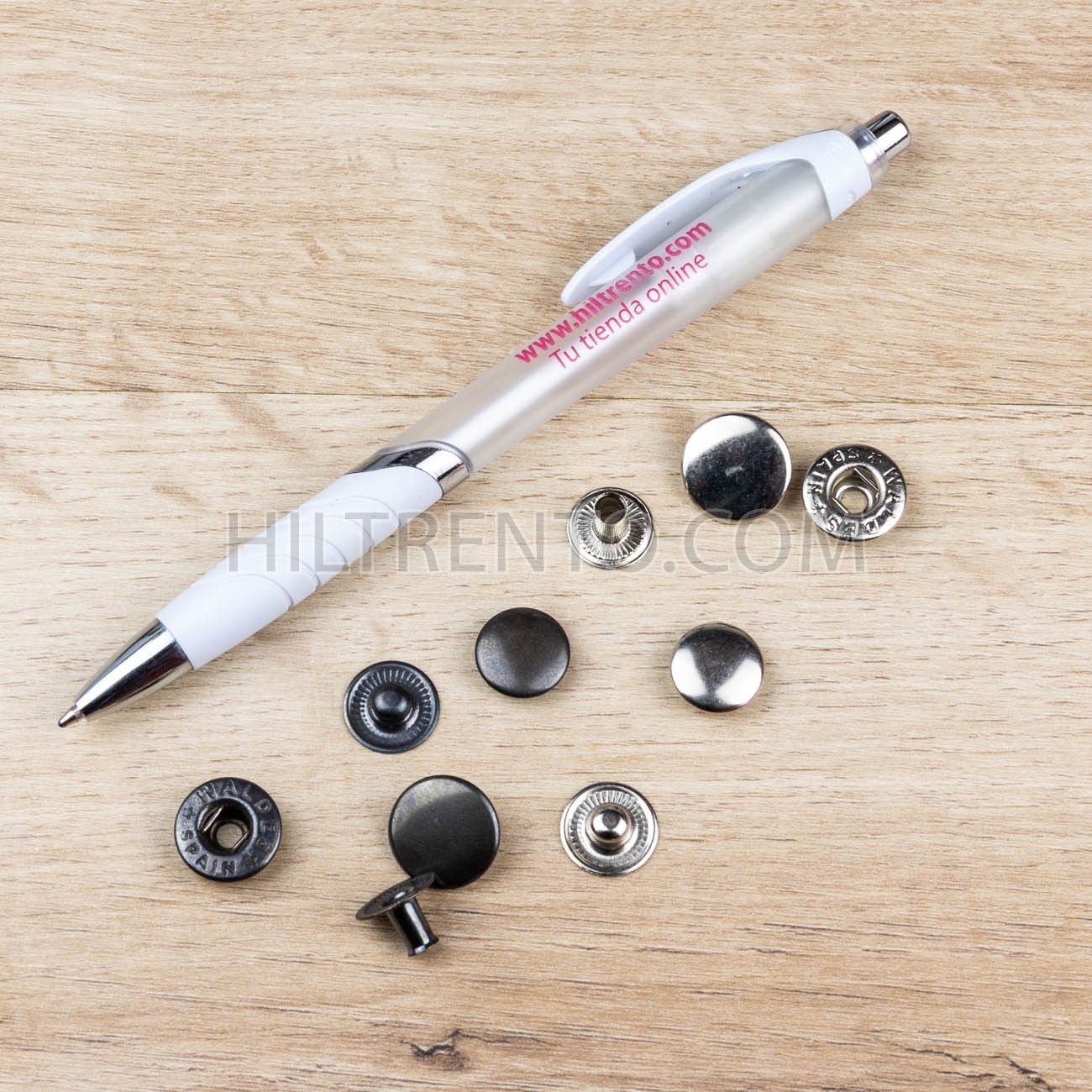 Broche o botón de presión metálico, de tensión suave, adecuado para marroquinería, estuches, monederos, bolsos, fundas, etc. También para confección en camisas, gabardinas, chaquetas, anoraks, pantalones, etc. Fabricados en latón, un material inoxidable a prueba de ambientes húmedos y salinos. Resistentes a la intemperie y adecuados también para el sector náutico. Calidad industrial, pensados para aguantar el desgaste y uso continuado durante miles de veces.
