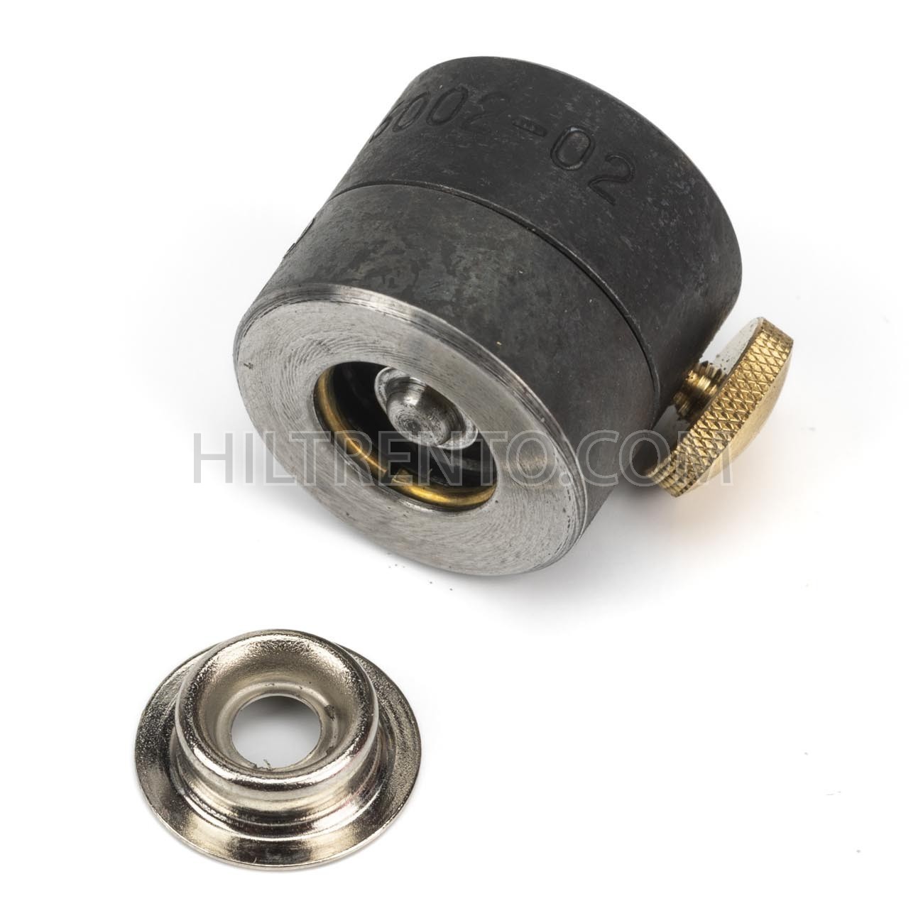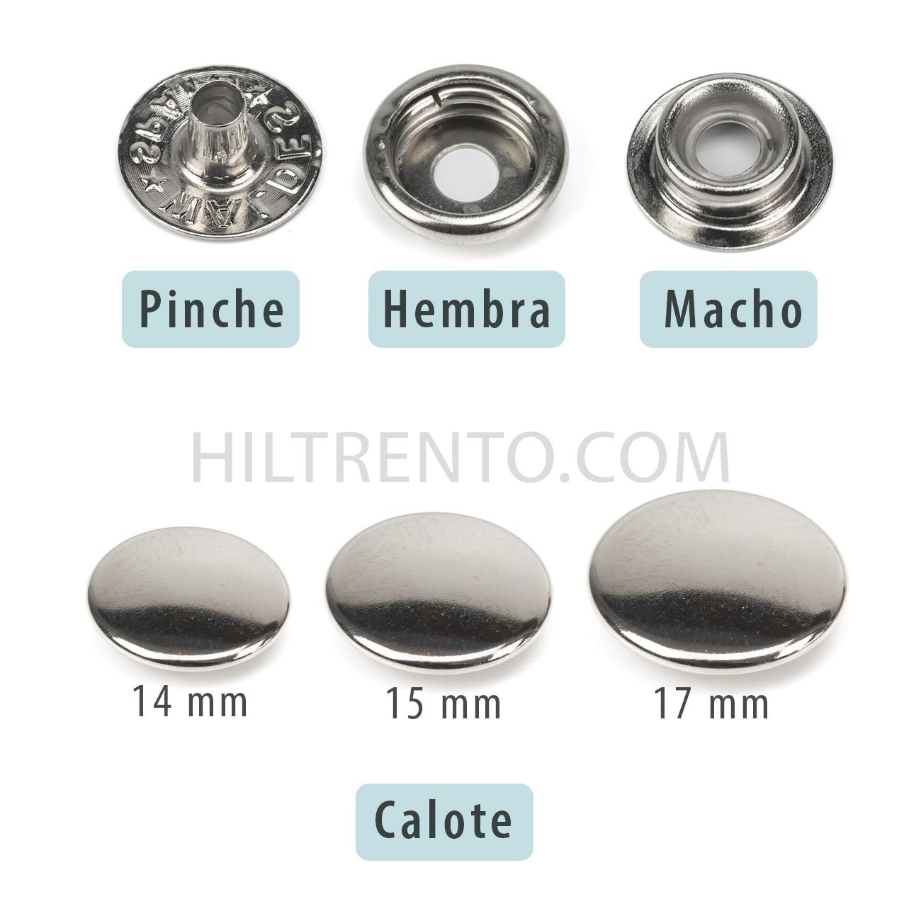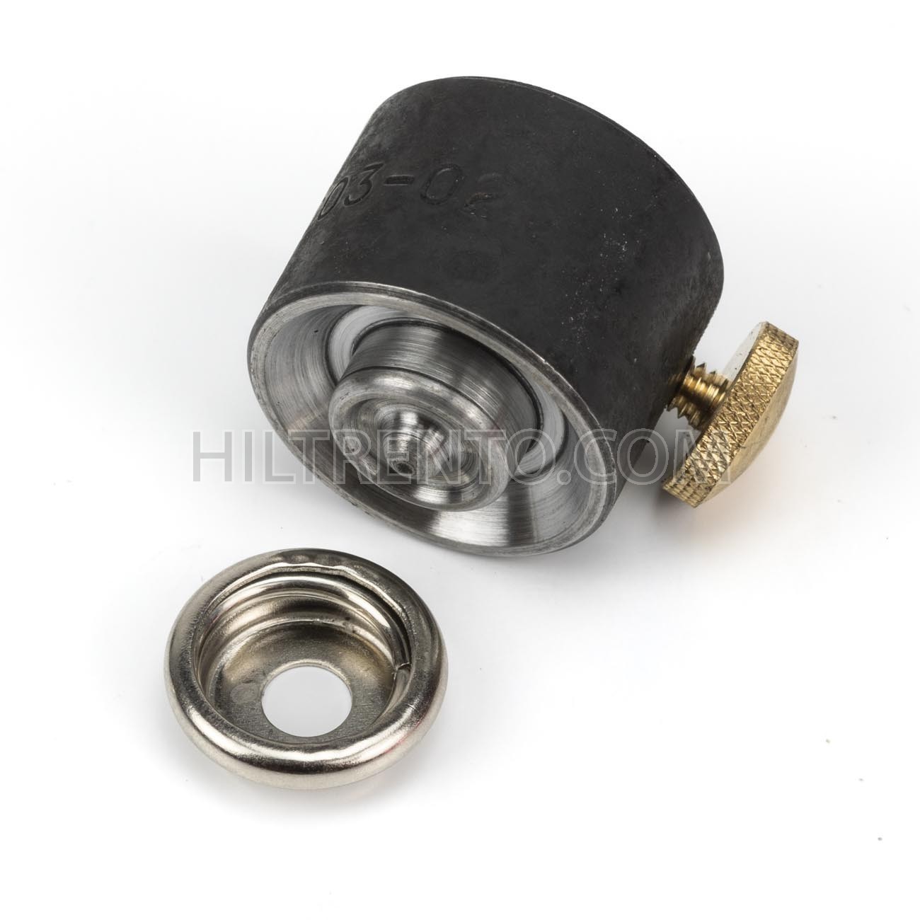 Troqueles , también llamados boquillas, para colocar el broche olimpia 8100 de la marca waldes. Consta de 4 piezas. El troquel que coloca el pinche, la hembra y el macho son comunes, ya que estas 3 piezas son siempre las mismas independientemente del tamaño del calote, El troquel que coloca el calote está disponible en varios tamaños y depende del tamaño del calote que vayas a colocar, tendrás que comprar su correspondiente troquel