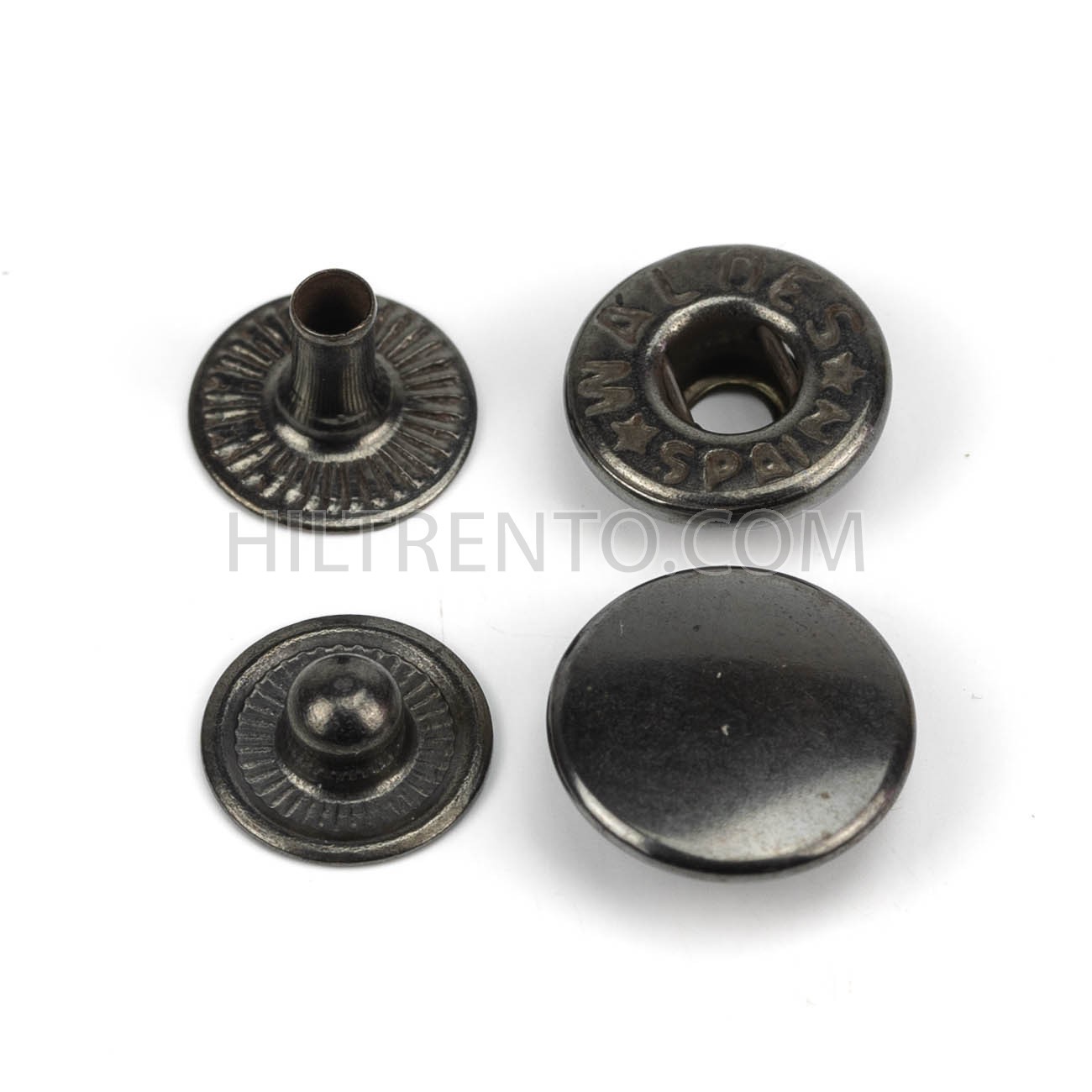Broche o botón de presión metálico de tamaño pequeño, de tensión suave, adecuado para marroquinería, estuches, monederos, bolsos, fundas, etc. También para confección en camisas, gabardinas, chaquetas, anoraks, pantalones, etc. Fabricados en latón, un material inoxidable a prueba de ambientes húmedos y salinos. Resistentes a la intemperie y adecuados también para el sector náutico. Calidad industrial, pensados para aguantar el desgaste y uso continuado durante miles de veces.
