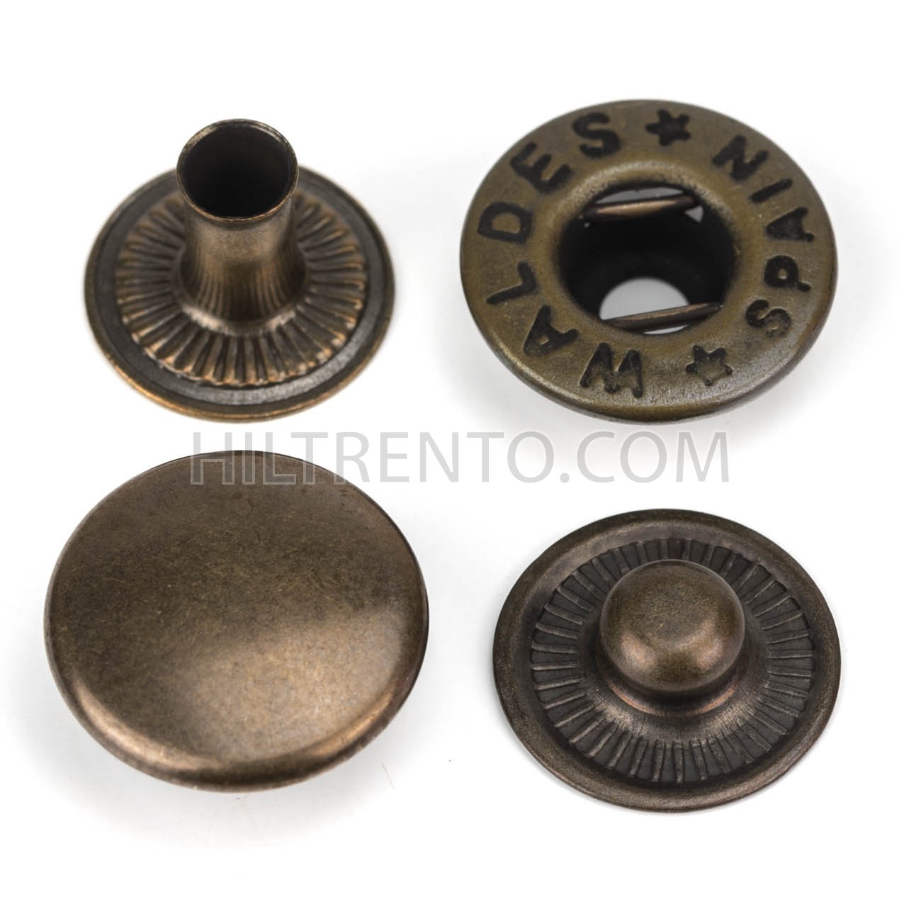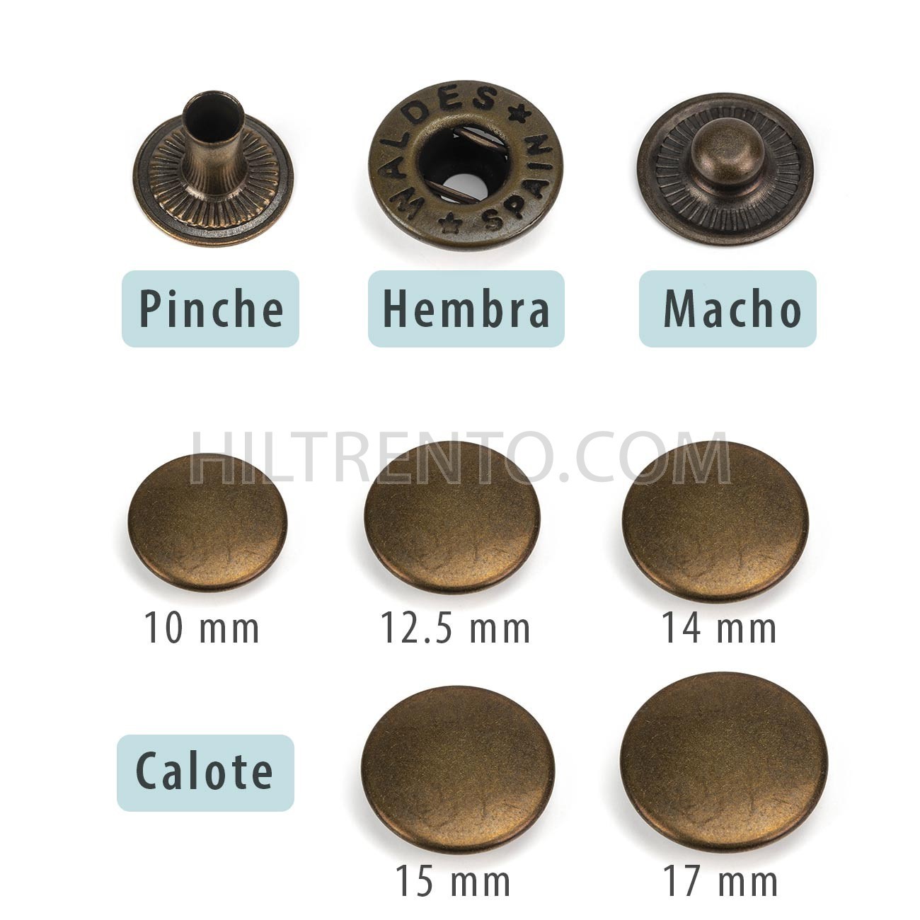 Broche o botón de presión metálico, de tensión suave, adecuado para marroquinería, estuches, monederos, bolsos, fundas, etc. También para confección en camisas, gabardinas, chaquetas, anoraks, pantalones, etc. Fabricados en latón, un material inoxidable a prueba de ambientes húmedos y salinos. Resistentes a la intemperie y adecuados también para el sector náutico. Calidad industrial, pensados para aguantar el desgaste y uso continuado durante miles de veces.