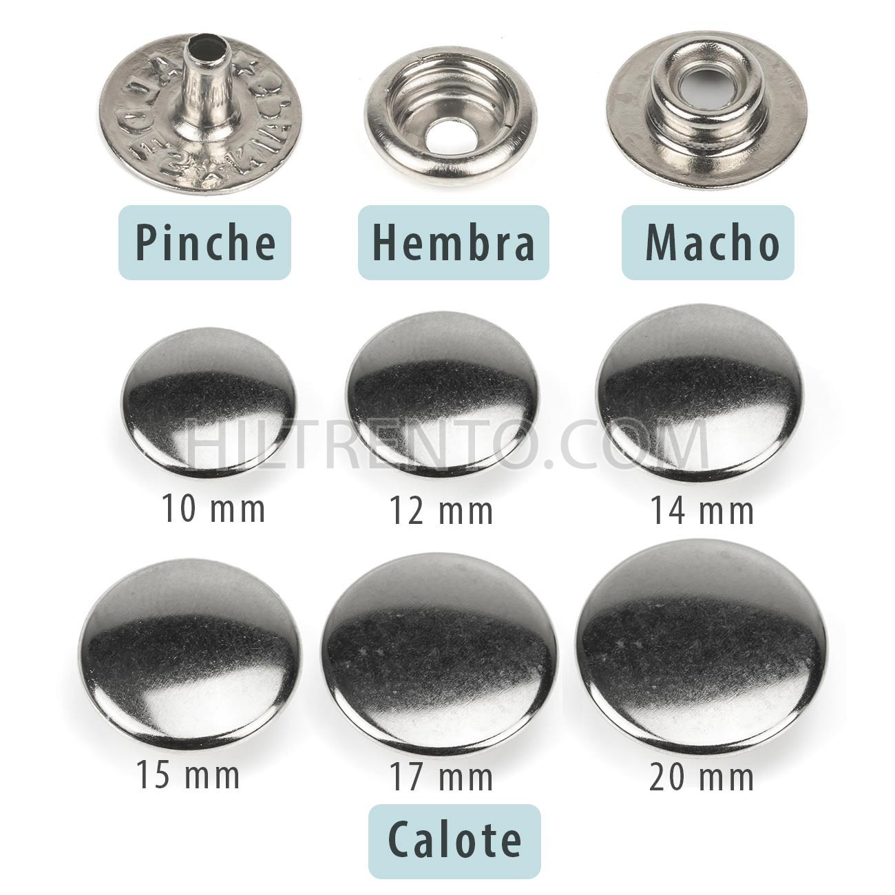 Troqueles, también llamados boquillas, para colocar el broche rayo 8020 de la marca waldes. Consta de 3 piezas. Un troquel que coloca el pinche, otro troquel que sirve para colocar tanto el macho como la hembra. El troquel que coloca el calote está disponible en varios tamaños y depende del tamaño del calote que vayas a colocar, tendrás que comprar su correspondiente troquel