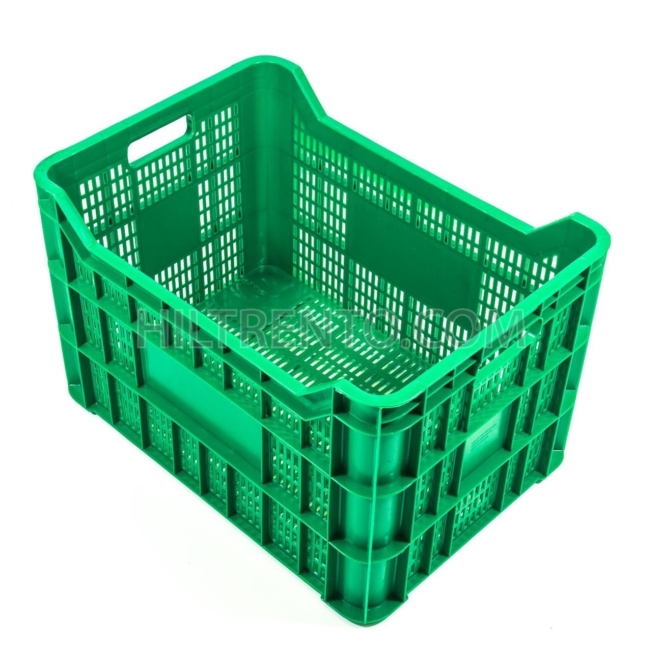Cubeta apilable grande, fabricada en polietileno de alta densidad HDPE con rejillas. Apta para transportar y almacenar multitud de productos.