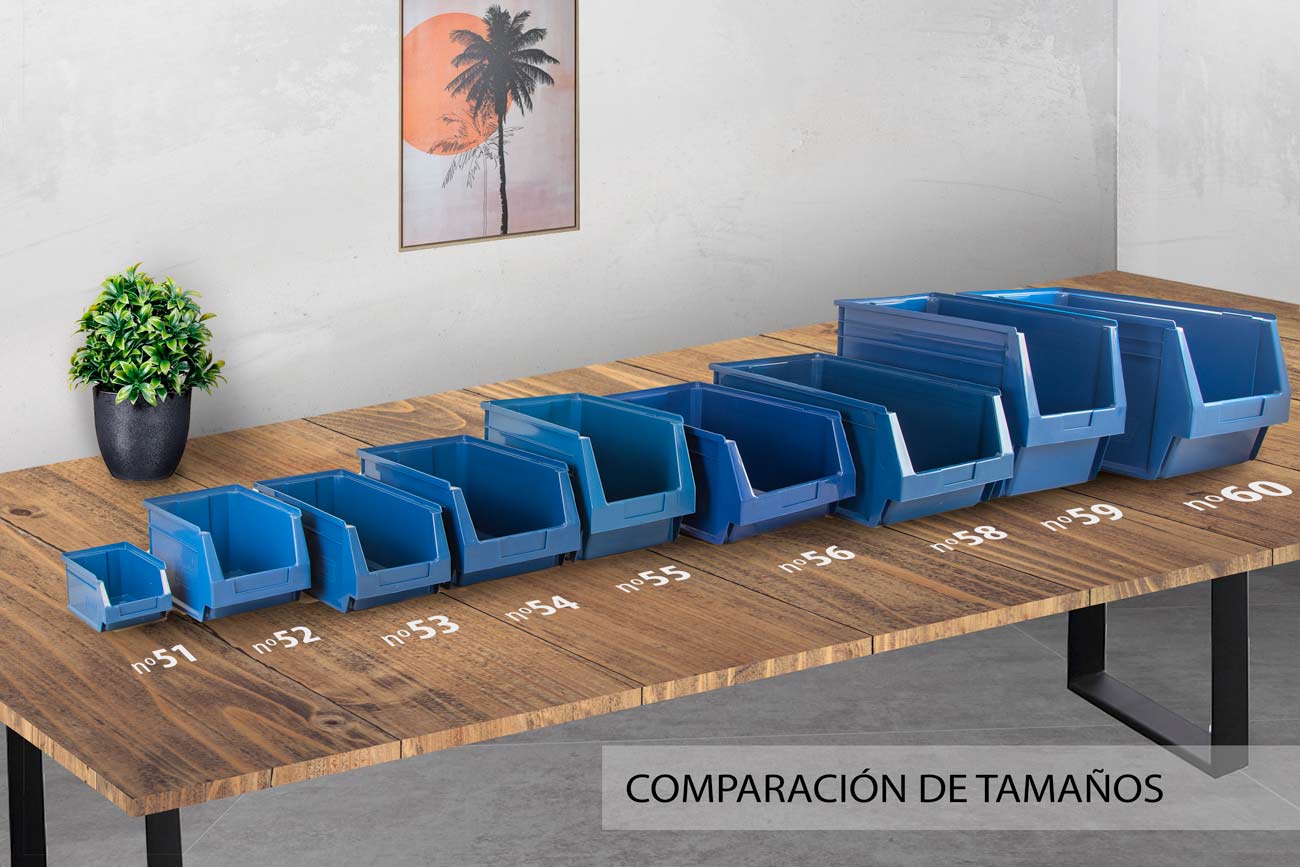 Gaveta o caja apilable para la organización y clasificación de productos. Son una de las mejores y más eficaces soluciones para clasificar productos y mercancía, ya que soportan mucho peso y permiten apilarse una encima de otra ganando espacio y productividad. Además gracias a su abertura frontal es muy fácil ver y sacar el contenido del interior.