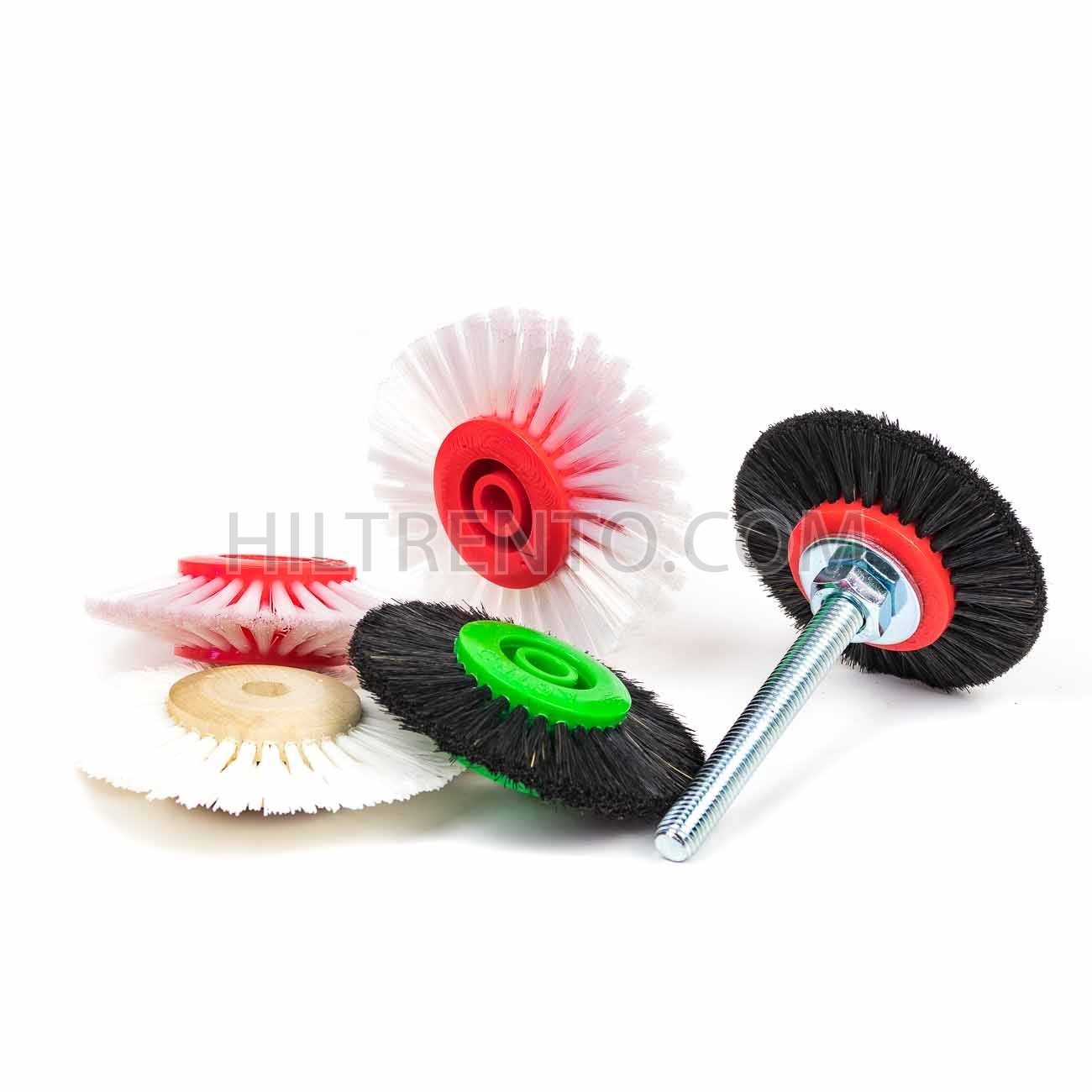 Eje roscado con tuerca y arandela para adaptar los cepillos de limpieza a taladros y máquinas rotativas.