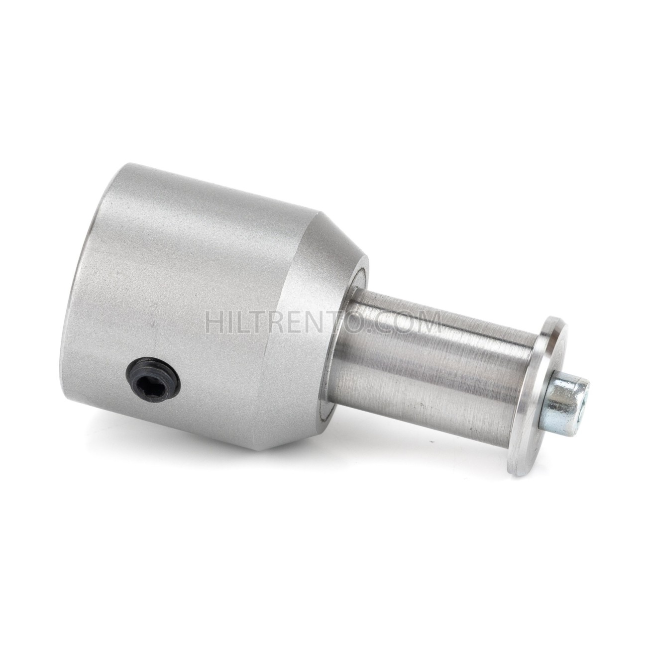 Casquillo fabricado en acero mediante corte de alta precisión. Se usa principalmente en las maquinas de finisaje de calzado, para adaptar un eje de 30 a eje de 20 mm. Ver dimensiones y cotas en la imagen. La rosca que sujeta la tapa del eje de 20 mm se puede desmontar para introducir el bloqueo. Incorpora un tornillo hallen que hace de tope contra el eje de 30 para bloquearlo
