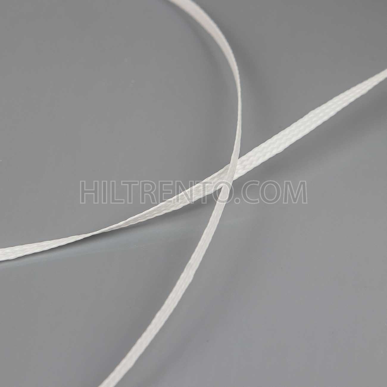 Cinta para coser dobladillos a máquina en el proceso de fabricación del calzado. Acabado suave al tacto y brillante. La cinta tiene forma plana.