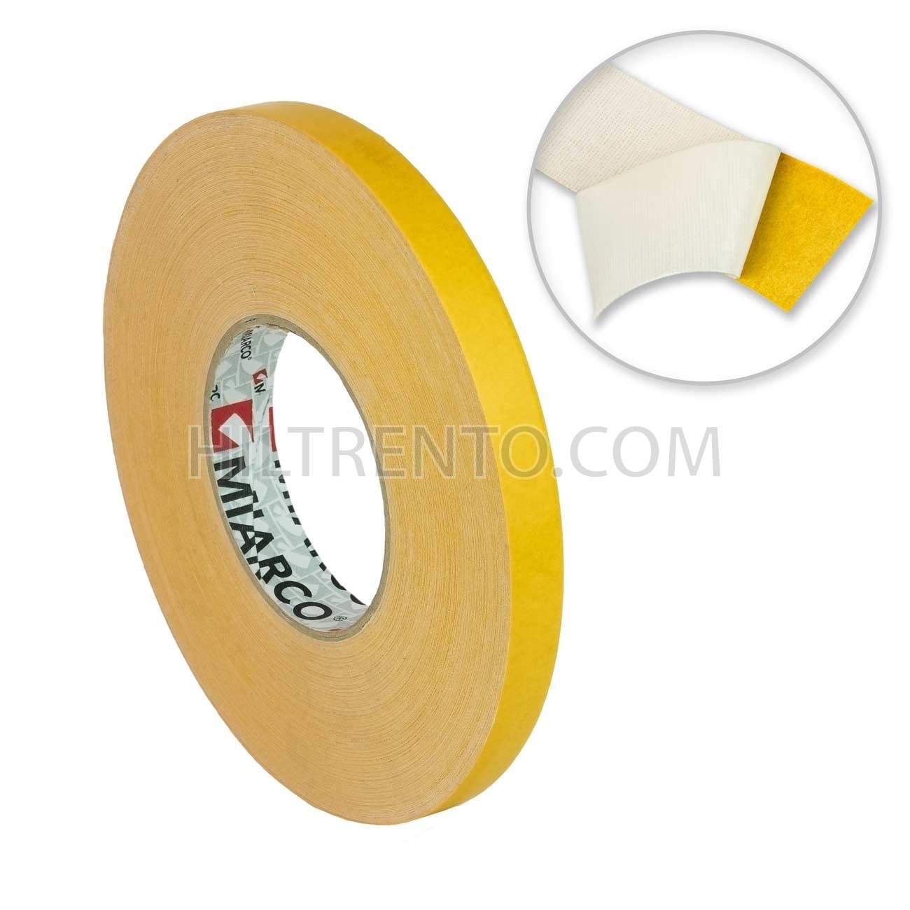 Cinta doble cara gruesa para superficies rugosas o porosas. No deja restos al despegar. Formada por una lámina de papel siliconado y una malla adhesiva de algodón. Se despega sin romperse.