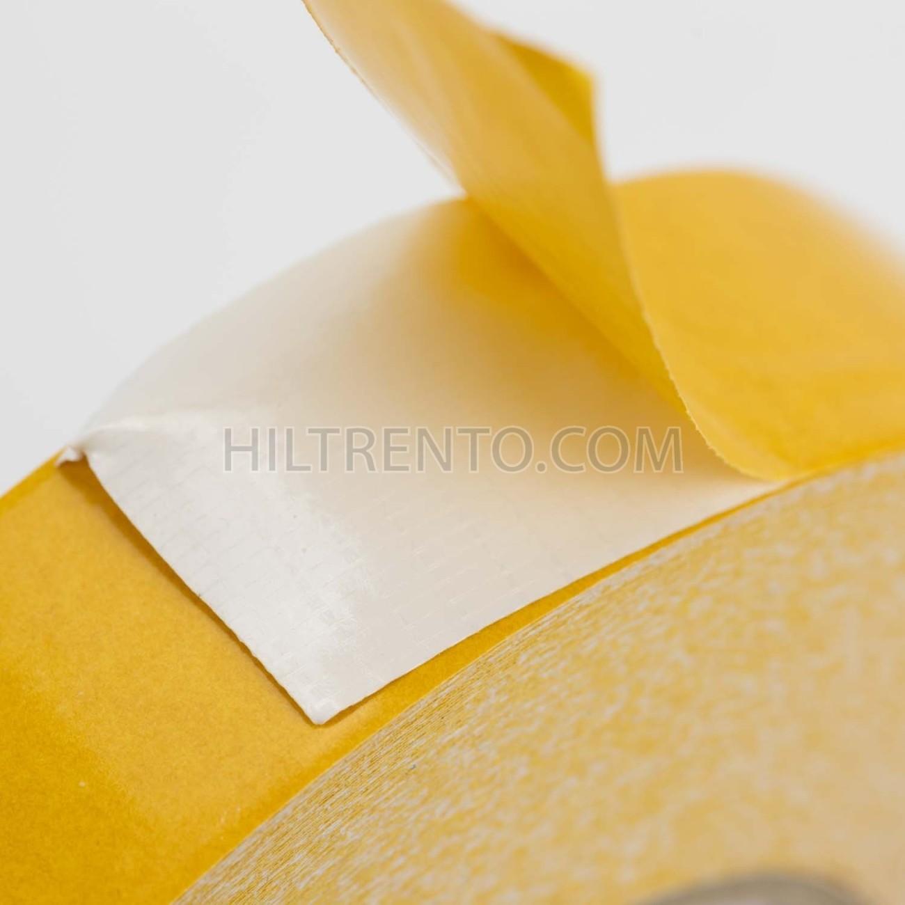Cinta adhesiva con adhesivo en ambas caras. Especial para superficies rugosas y difíciles. Es una cinta de elevado tack, es decir, de alto agarre inicial y pegajosidad con buenos valores de adhesión. El tejido de algodón que forma la cinta se adapta a las superficies porosas e irregulares ofreciendo una excelente adhesión. Incluye un papel protector siliconado amarillo fácil de despegar.