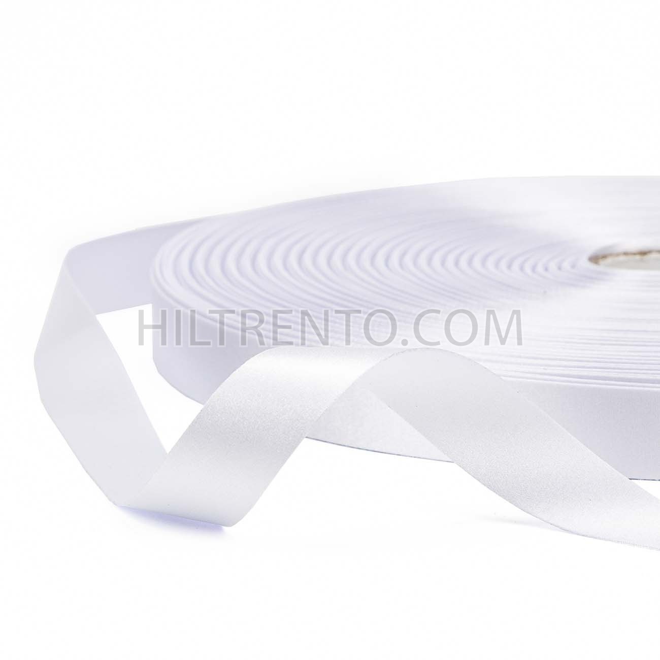 Cinta 100% poliéster en color blanco, para imprimir y sublimar. Se usa para hacer pulseras, lanyards y colgantes en ferias y eventos, también para fabricar etiquetas textiles que se cosen a la prenda. Se trata de una cinta de alta calidad con un entramado muy liso y sin relieves ni rebordes en los laterales, pensada para conseguir un resultado óptimo al sublimarla. También cuenta con un grosor generoso a pesar de ser una cinta blanda y maleable.