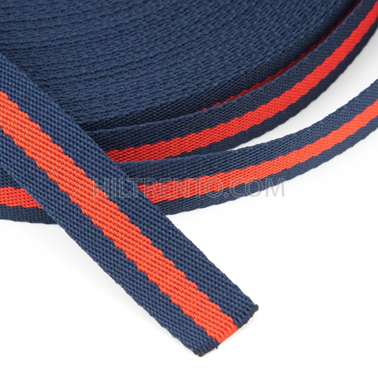 Cinta poliéster trenzada rayas 20 mm marino/rojo/marino - Rollo 50 metros
