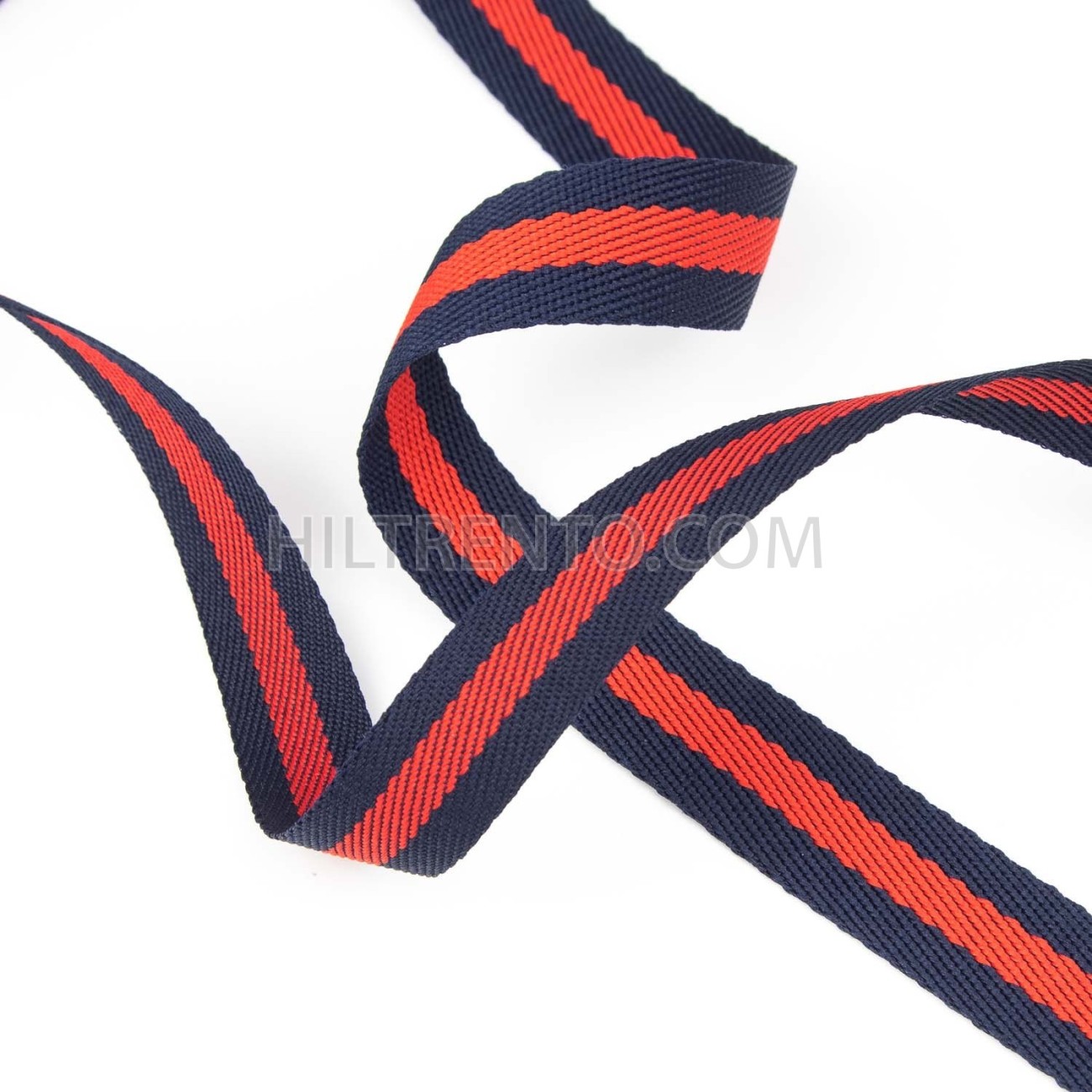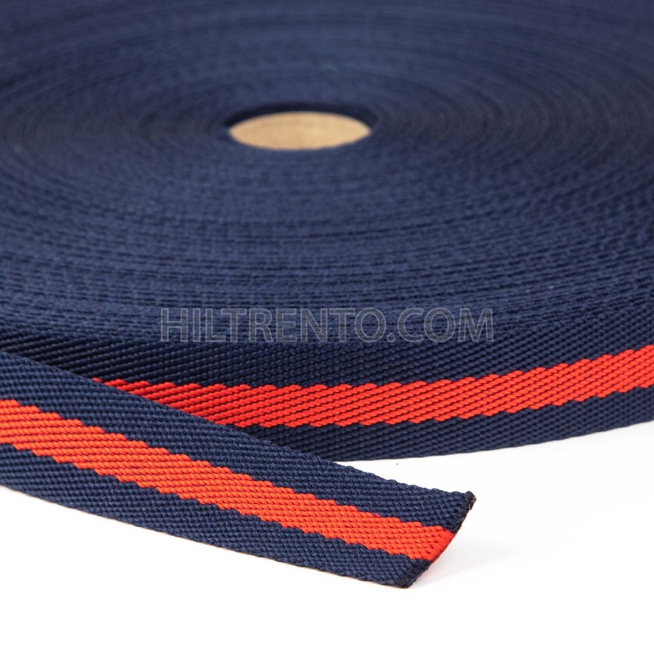 Cinta poliéster trenzada rayas 25 mm marino/rojo/marino - Rollo 50 metros