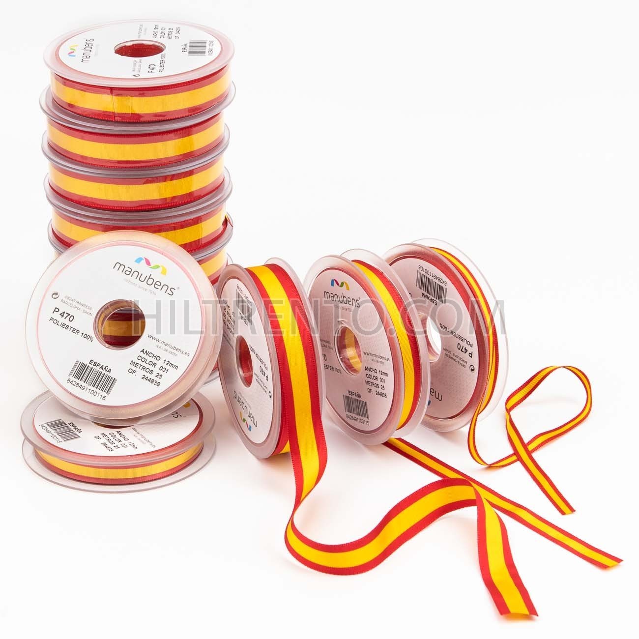 Cinta de poliéster de alta calidad, con la bandera de España. Tipo falla grosgrain de acabado fino y elegante. Ideal para bordar o coser al producto, también para hacer pulseras, lazos, decoración, etc.