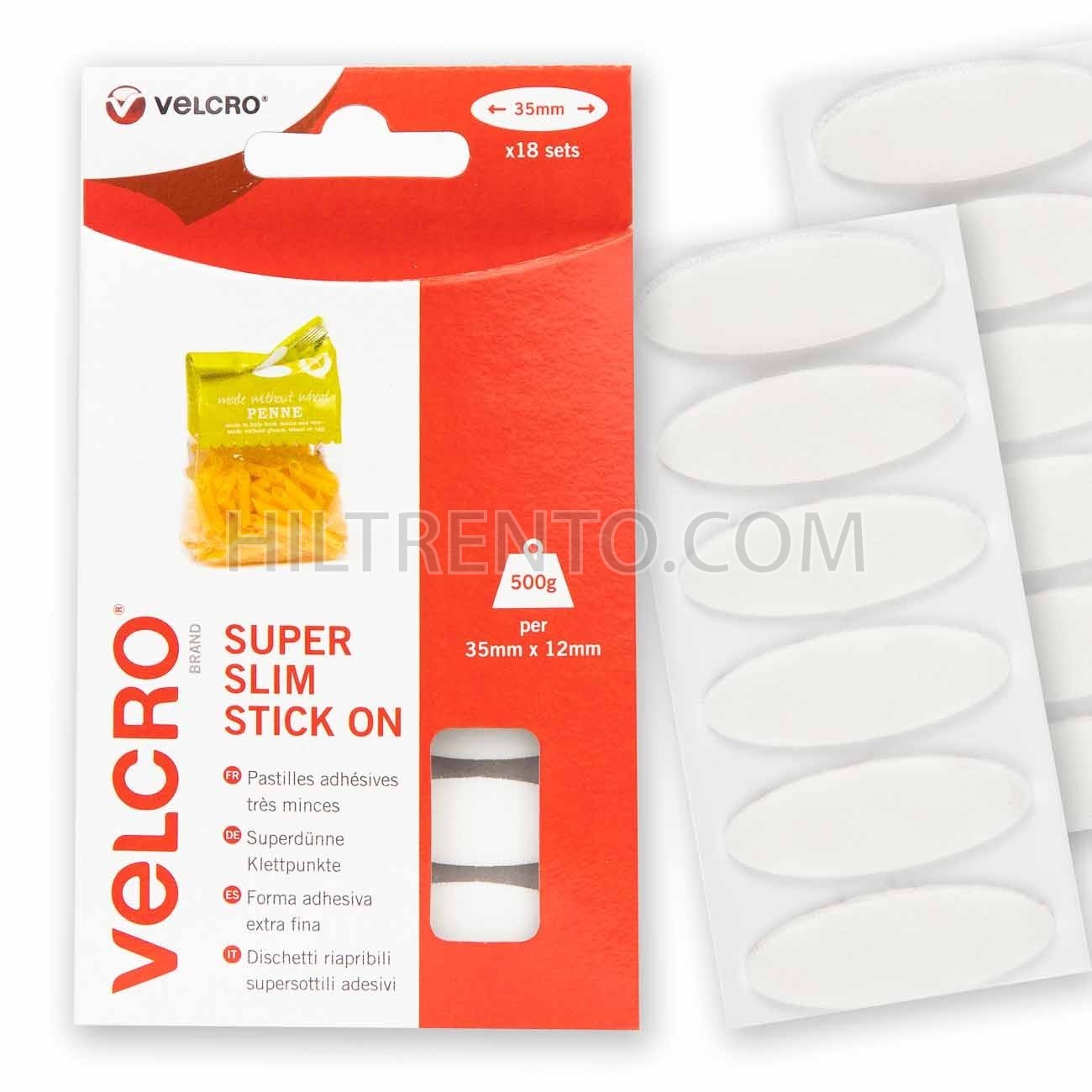 Etiquetas ovaladas de la marca VELCRO® con perfil extra fino. Se usan para cerrar bolsas de alimentos, tales como pasta, snacks, galletas, etc, evitando así el deterioro del producto. También para cerrar otros tipos de embalajes que requieran aperturas y cierres continuados.