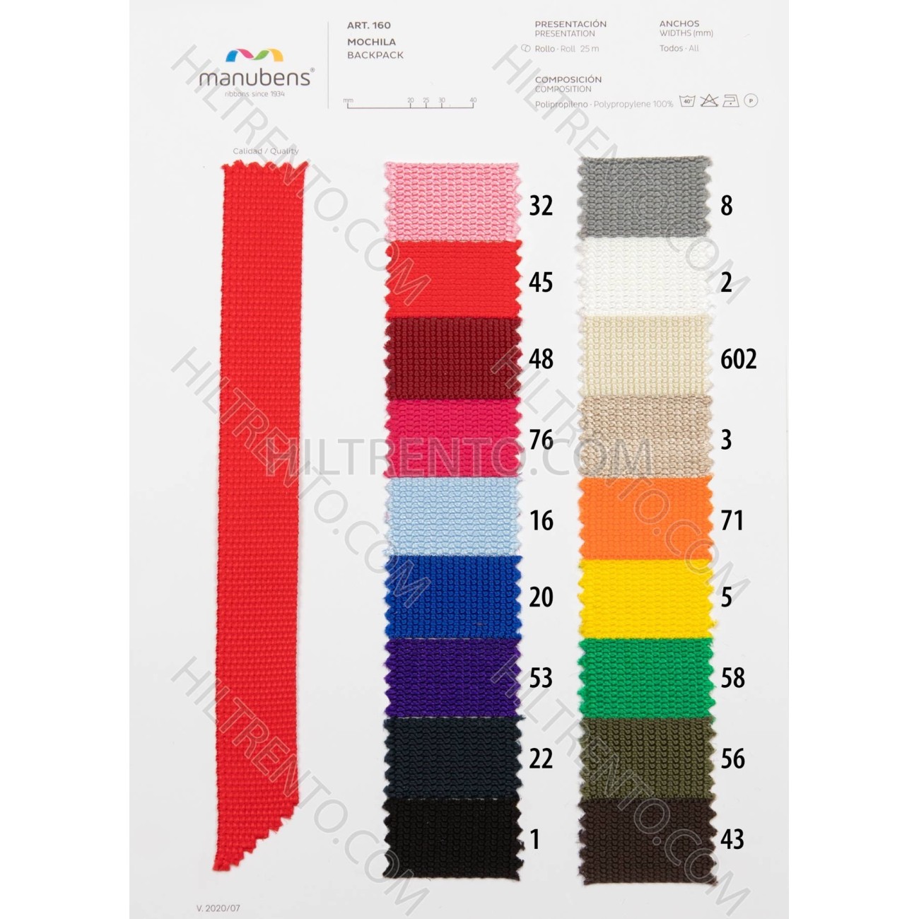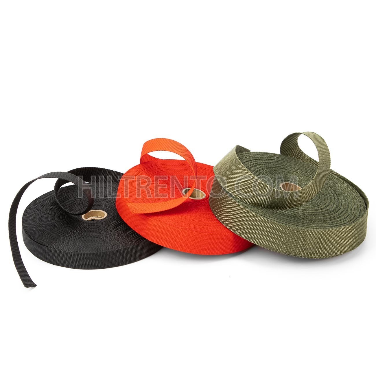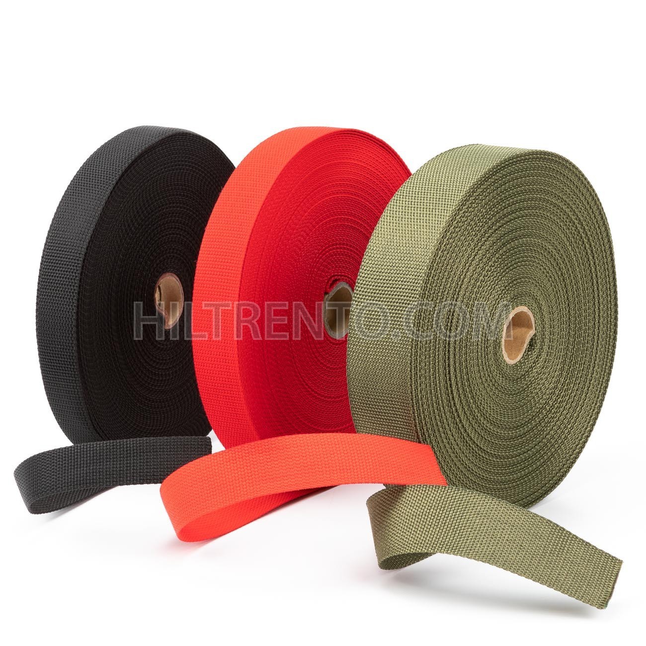 Cinta mochila 100% polipropileno de alta resistencia, fabricada en España. Para la fabricación de correas para mochilas, maletas, cinturones, asas, collares y correas para perros, cinchas, riñoneras, etc.