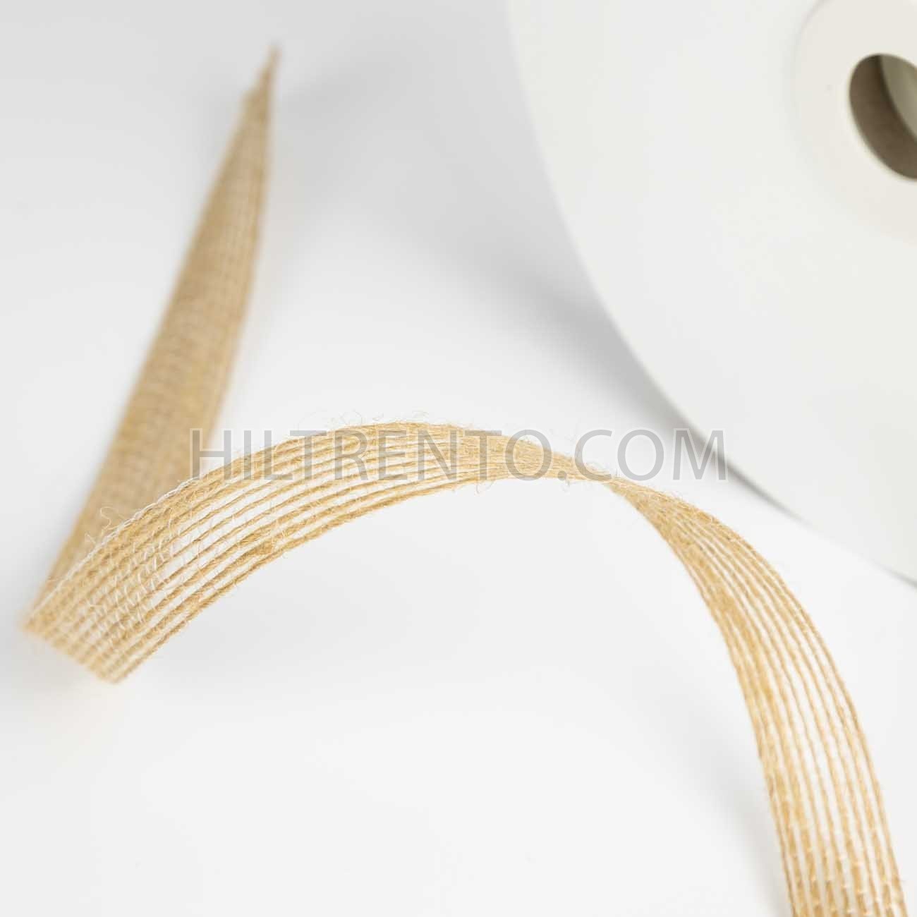 Cinta de yute o arpillera fabricada a partir de fibras naturales. Acabado rústico y natural. Se utiliza para envolver paquetes y sobres, detalles de bodas y comuniones, para envolver jarrones, frascos y botellas, decorar cajas, etc. También se usa para sombreros o pamelas de fiesta y boda.