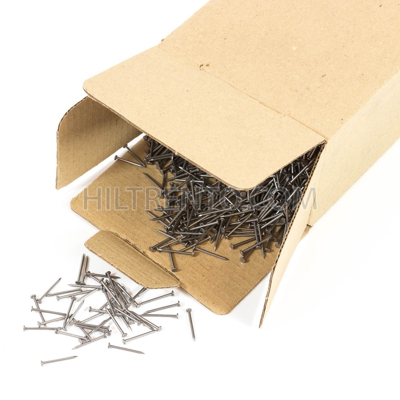 Caja de clavos de 16 mm de altura. Se utilizan para colocar tapas de tacones, contrachapado, trabajos de carpintería, modelismo, en el calzado, etc.