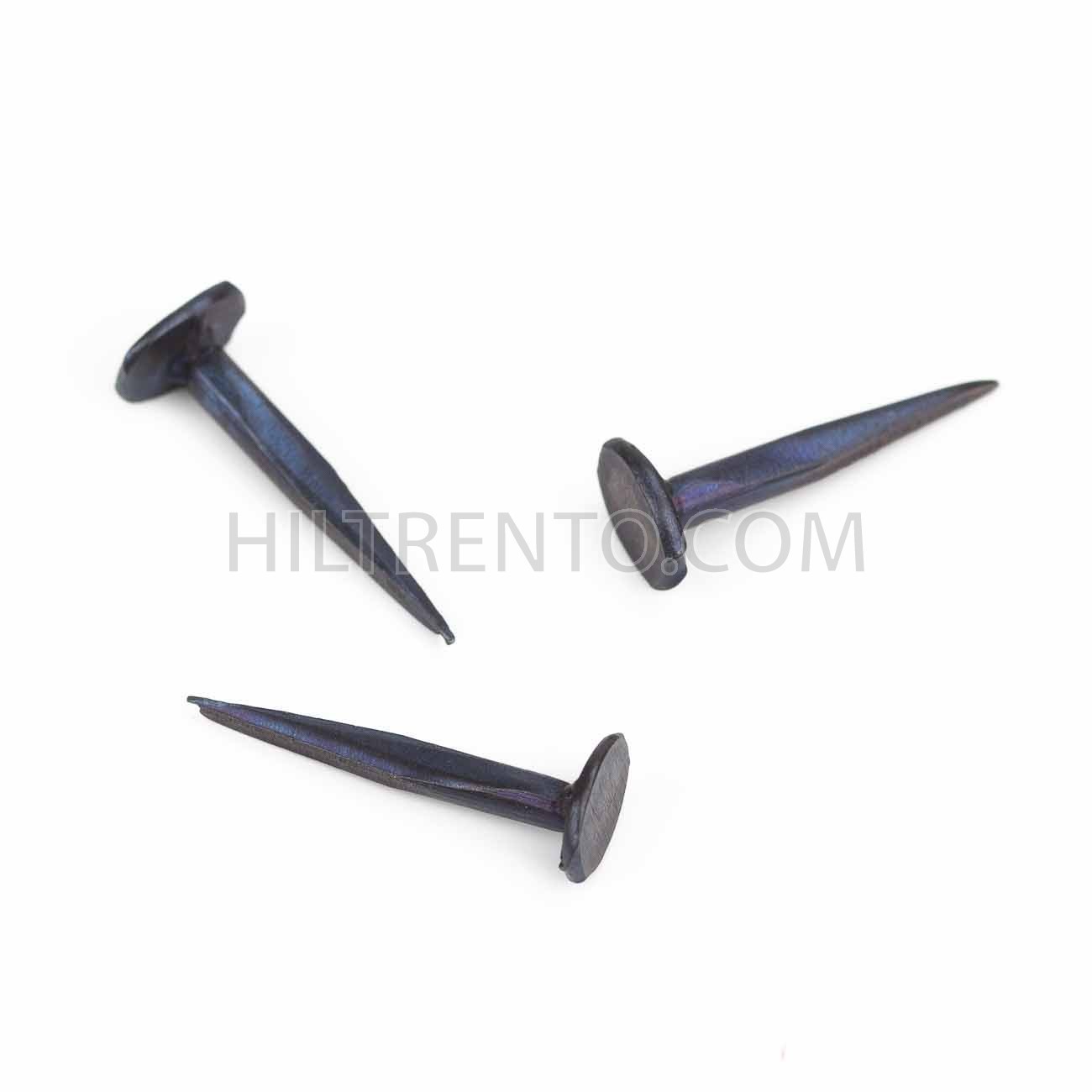 Semence de acero dulce pavonado de alta calidad con cabeza ancha y cuerpo terminado en punta con forma de estaca. Estos clavos son muy utilizados por zapateros para la reparación y fabricación de zapatos a mano de forma artesanal.