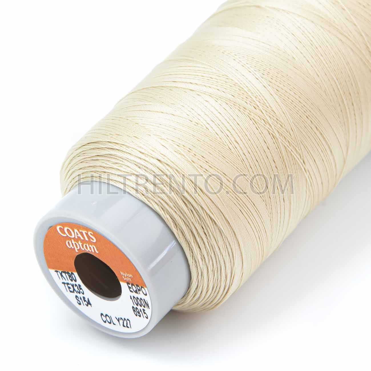 Hilo coats aptan 80 100% poliamida 6.6, nylon. Alta tenacidad y muy buena relación entre resistencia y finura. Mayor resistencia que los hilos de poliéster similares y mejores propiedades de elongación para una óptima formación de bucles y puntadas ajustadas. Superficie tratada con un lubricante especial que mejora la fricción y permite una gran velocidad de costura.