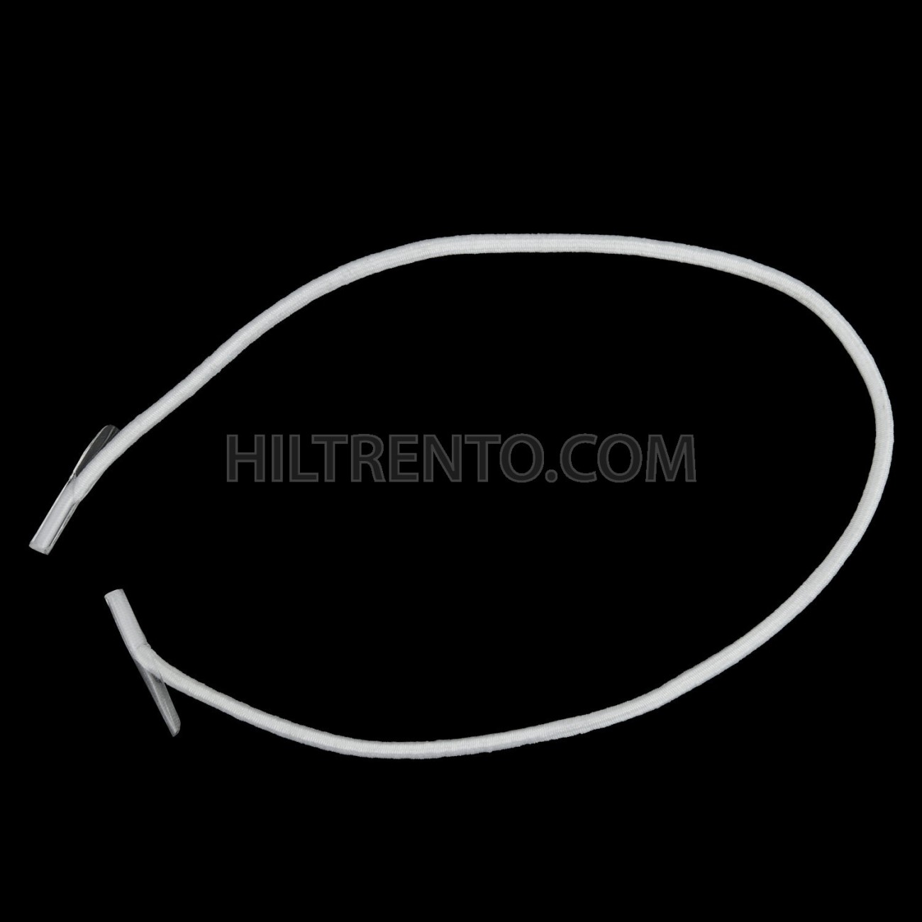 Cordón o goma elástica con terminal transparente cabeteado en la punta, también llamado herrete. Fabricado en poliéster y elastómero de alta calidad. Se ultiliza para carpetas, papelería, artículos de imprenta como libros, archivadores, agendas, caretas, etc.