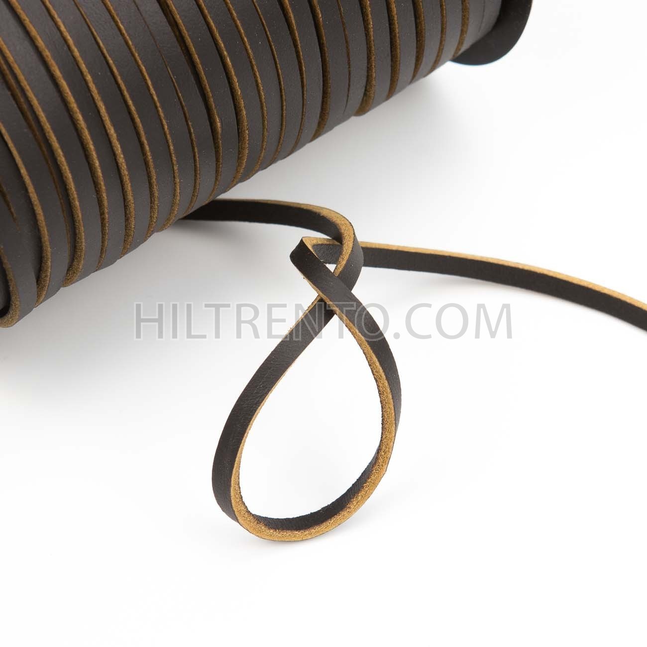 Cordón náutico fabricado en piel flor auténtica. Se utiliza para zapatos náuticos, como cordonera, fabricación de bolsos, marroquinería y gran variedad de labores de artesanía. Forma plana con 4 lados. Extremadamente resistente a la rotura