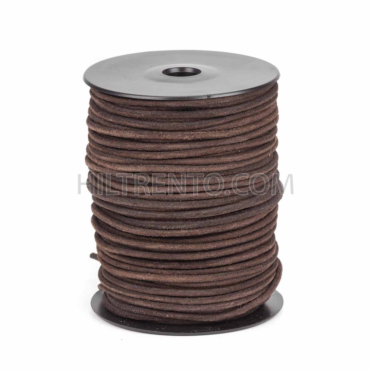 Cordón 3 mm redondo de cuero serraje marrón café - Rollo 50 mts