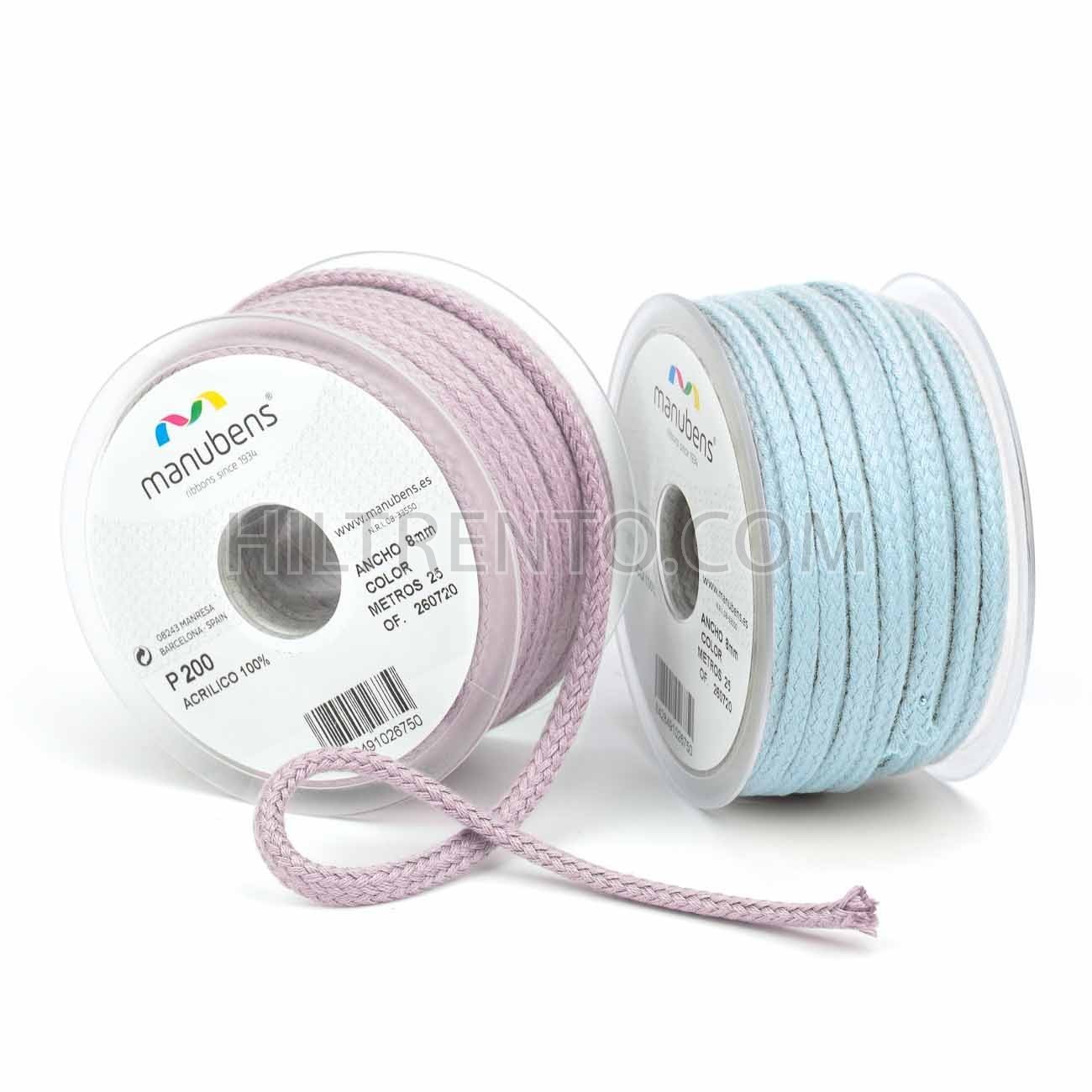 Cordón trenzado redondo sin alma interior 100% acrílico de la marca Manubens, ideal para poner en sudaderas, cierre de capuchas, bolsas de tela, bolsas de pan, bolsas de almuerzo para niños, manualidades, decoración, etc.