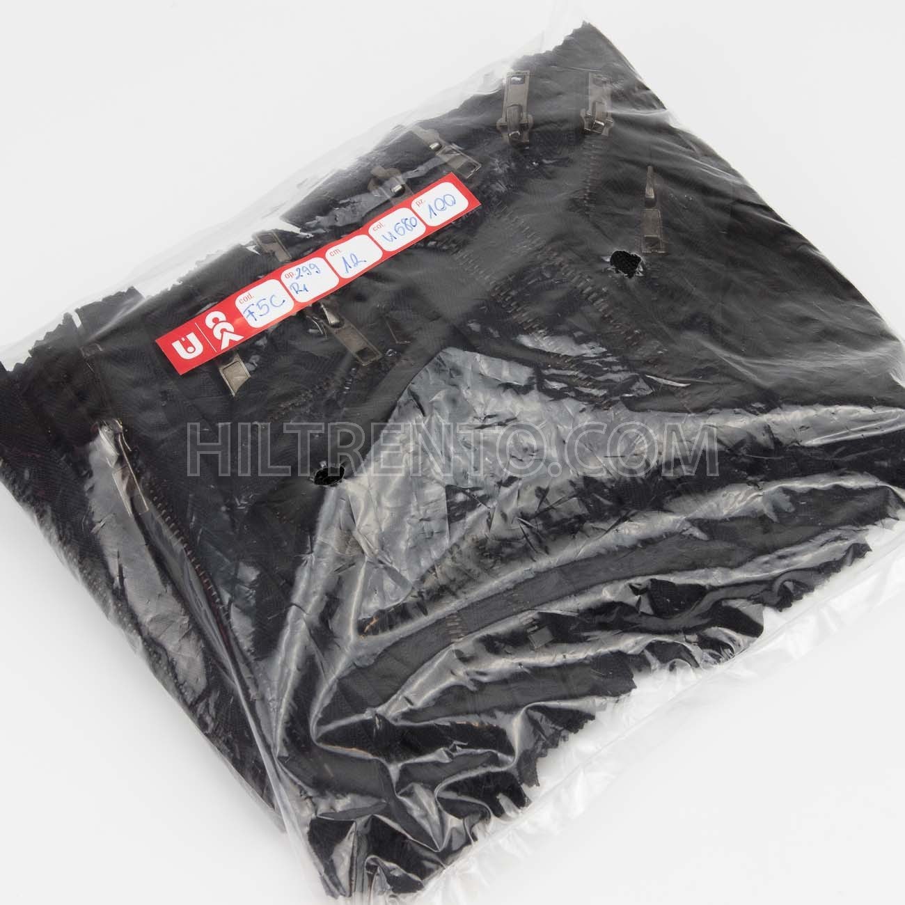 Cremallera Catalana "CCA". Fabricada en poliéster con dientes metálicos, topes metálicos y cursor metálico. Multitud de aplicaciones. Marroquinería, cuero, calzado, ropa laboral, y en general, cualquier aplicación que precise una cremallera robusta y resistente.