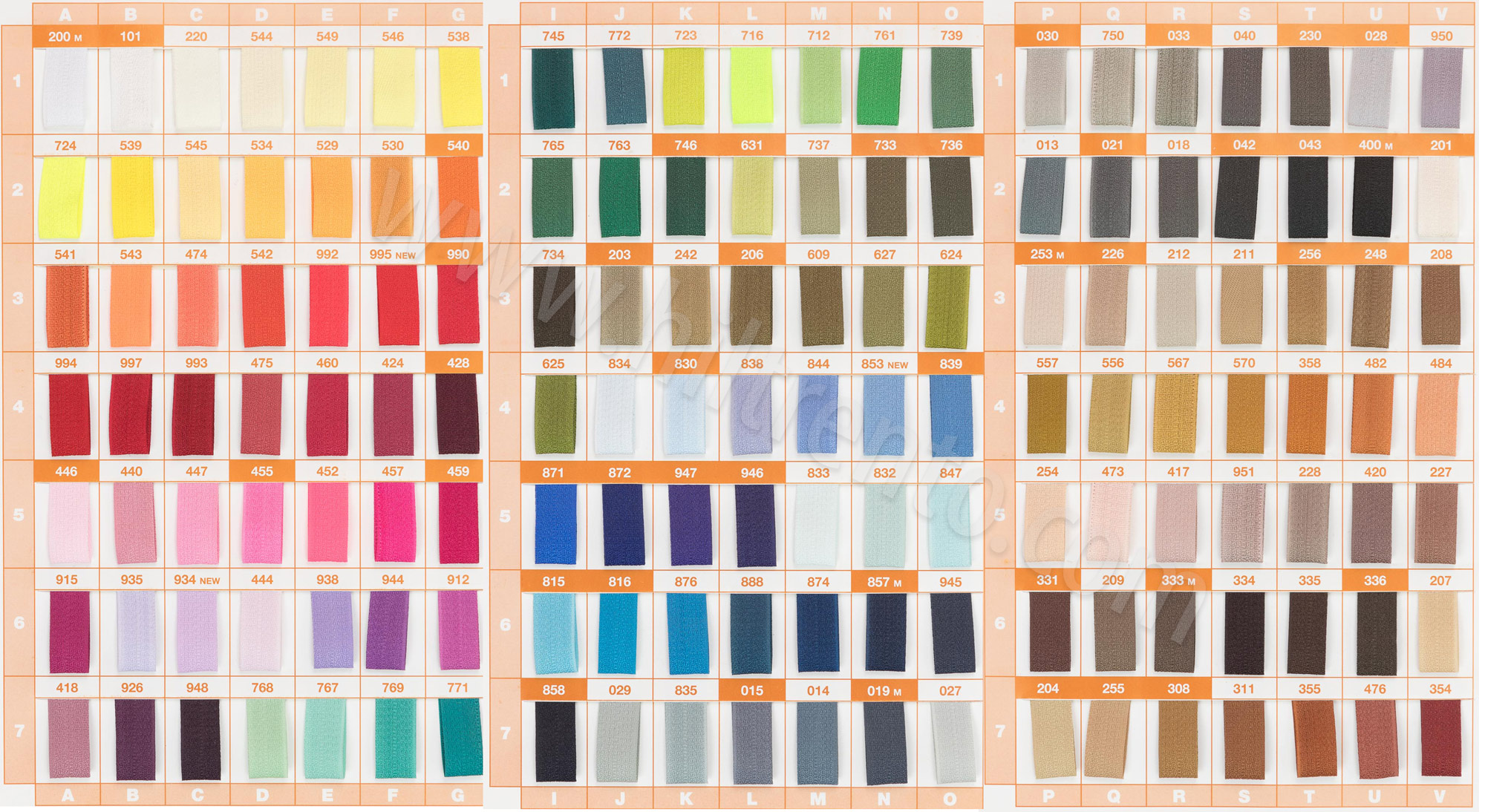 Los sombreados en naranaja son los colores básicos de la cremallera espiral.