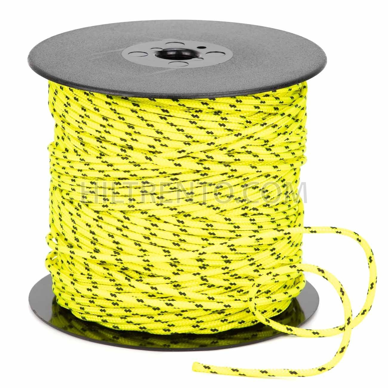 Cuerda trenzada poliéster 3 mm, fantasía amarillo fluor-negro, cordón para pulseras, manualidades, exterior - 100 metros
