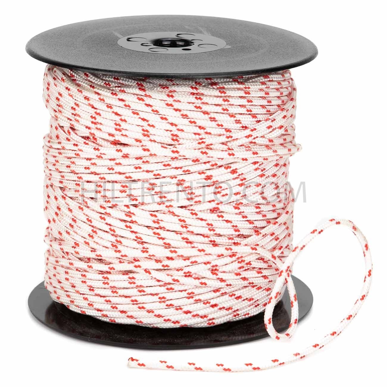 Cuerda trenzada poliéster 3 mm, fantasía blanco-rojo, cordón para pulseras, manualidades, exterior - 100 metros